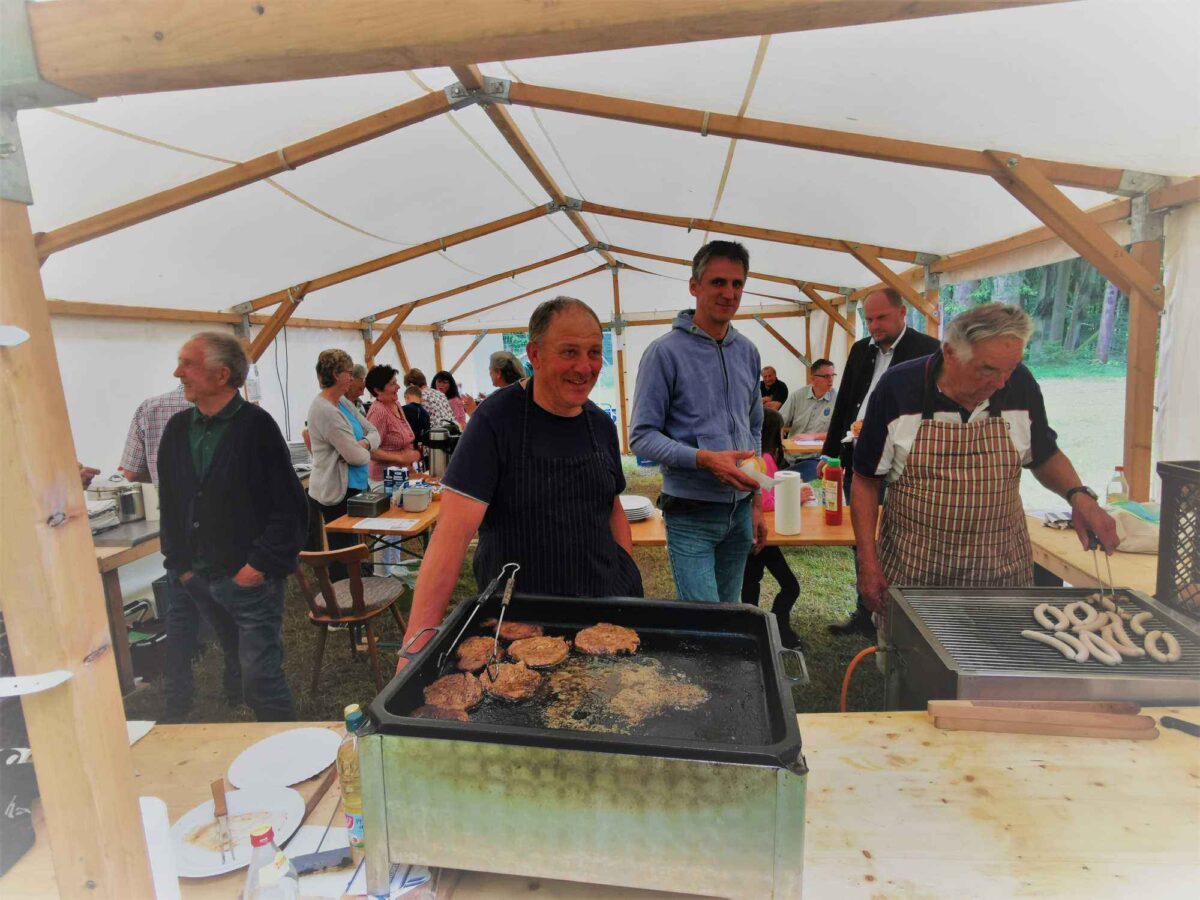 Kurz erinnert wurde an den Bau des Stückbergturms vor 50 Jahren und an die grundlegende Sanierung 2017. Beste musikalische Unterhaltung boten mit bayerisch-böhmischen Melodien die Werkstattmusikanten und kulinarisch mit Grillspezialitäten und leckeren Kuchen hatte sich die große OWV-Familie mit Helfern auf den Ansturm vorbereitet. Es wurde im Vorfeld fleißig organisiert, eingekauft, gebacken und zum Fest gegrillt und serviert.
