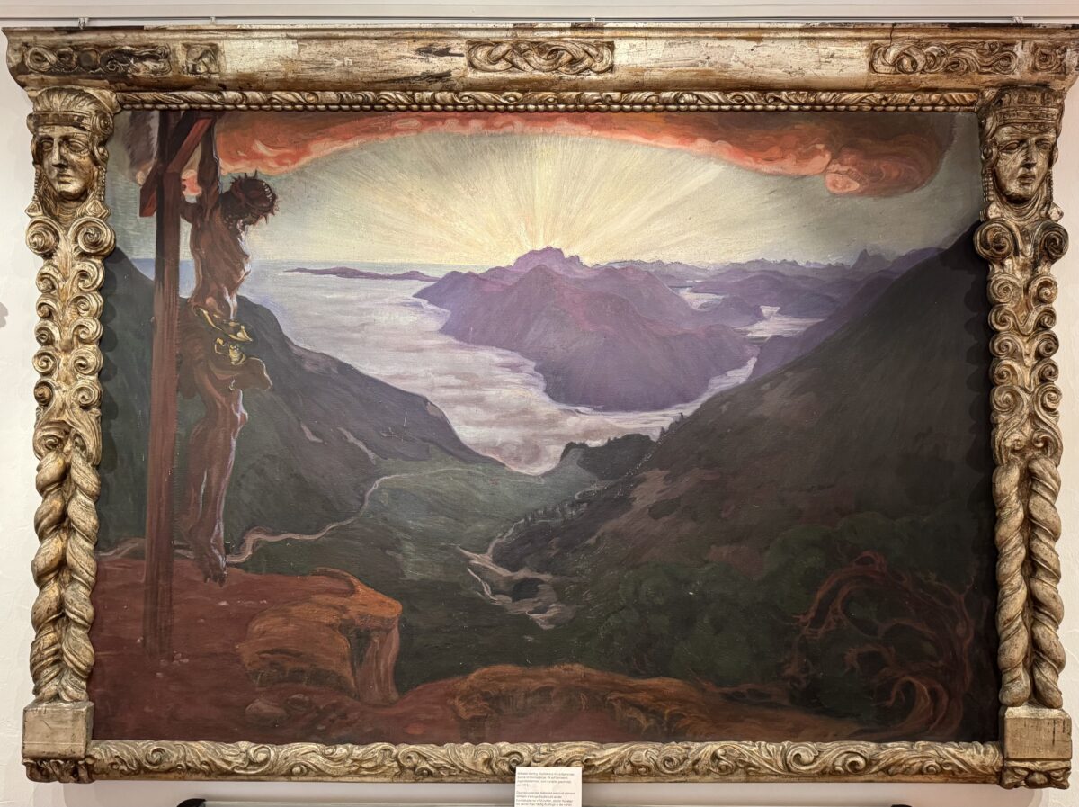 Selbst Heiner Vierling und seine Frau konnte die Sonderausstellung an mancher Stelle überraschen: “Manche Werke waren uns gar nicht bekannt.” Ein großformatiges Gemälde dagegen kennen sie sehr gut: “Gipfelkreuz mit Sonnenaufgang” hing vorher in ihrem Privathaus. Das Ehepaar hat das bemerkenswerte Bild im Jugendstil-Rahmen dem Stadtmuseum geschenkt.
