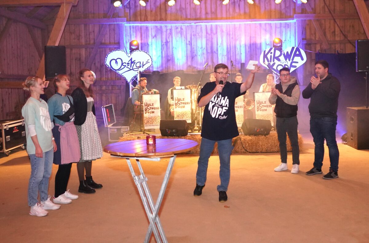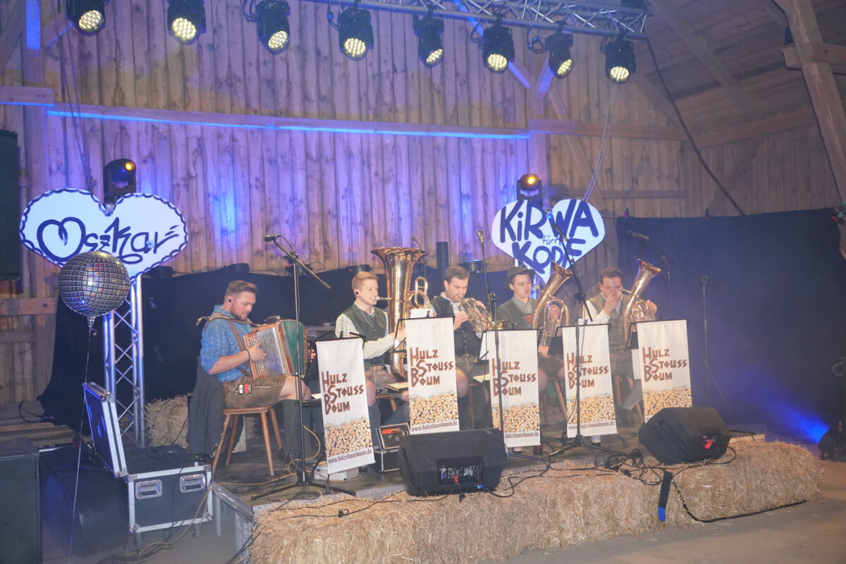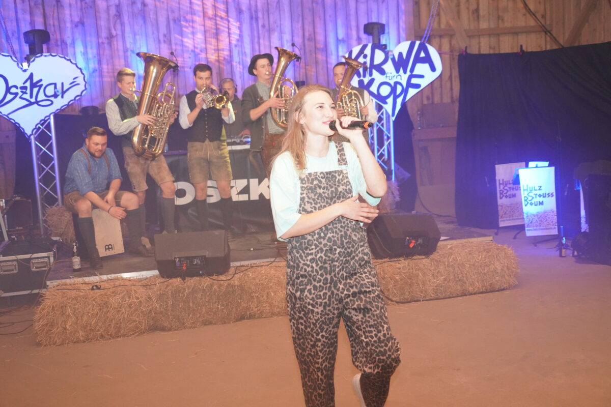 Zum Schluss kam etwas vollkommen Neues, die Hulzstoussboum lieferten den entsprechenden Beat mit ihren Instrumenten zum Rap von Oszkar beim „Schickeria“ sowie nach der gemeinsamen „Gmade Wiesn“ und schließlich kam man um eine Zugabe mit dem Titelsong „Kirwa fürn Kopf“ nicht rum. Die Feuerwehr Spielberg sorgte mit Würstchen und Getränken für ihre „Feuerwehrkameradin Oszkar“, die auch bei der Dorffeuerwehr aktiv ist.