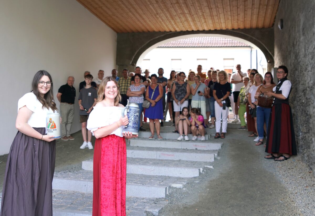 Zwei Kellnerinnen (Annika Pankotsch und Hannah Reil) stellten anschließend am Marktplatz mit kühlem Bier im Krug das Brauwesen, das schon seit 1390 in Waldthurn vertreten war, vor. „Da das Bier neben Brot zu den wichtigsten Nahrungsmitteln zählte, wurde es in größeren Mengen gebraut, die Biersuppe wurde im 19. Jahrhundert häufig als Frühstück verwendet“. Wer während des Gottesdienstes im Wirtshaus angetroffen wurde, wurde bestraft.