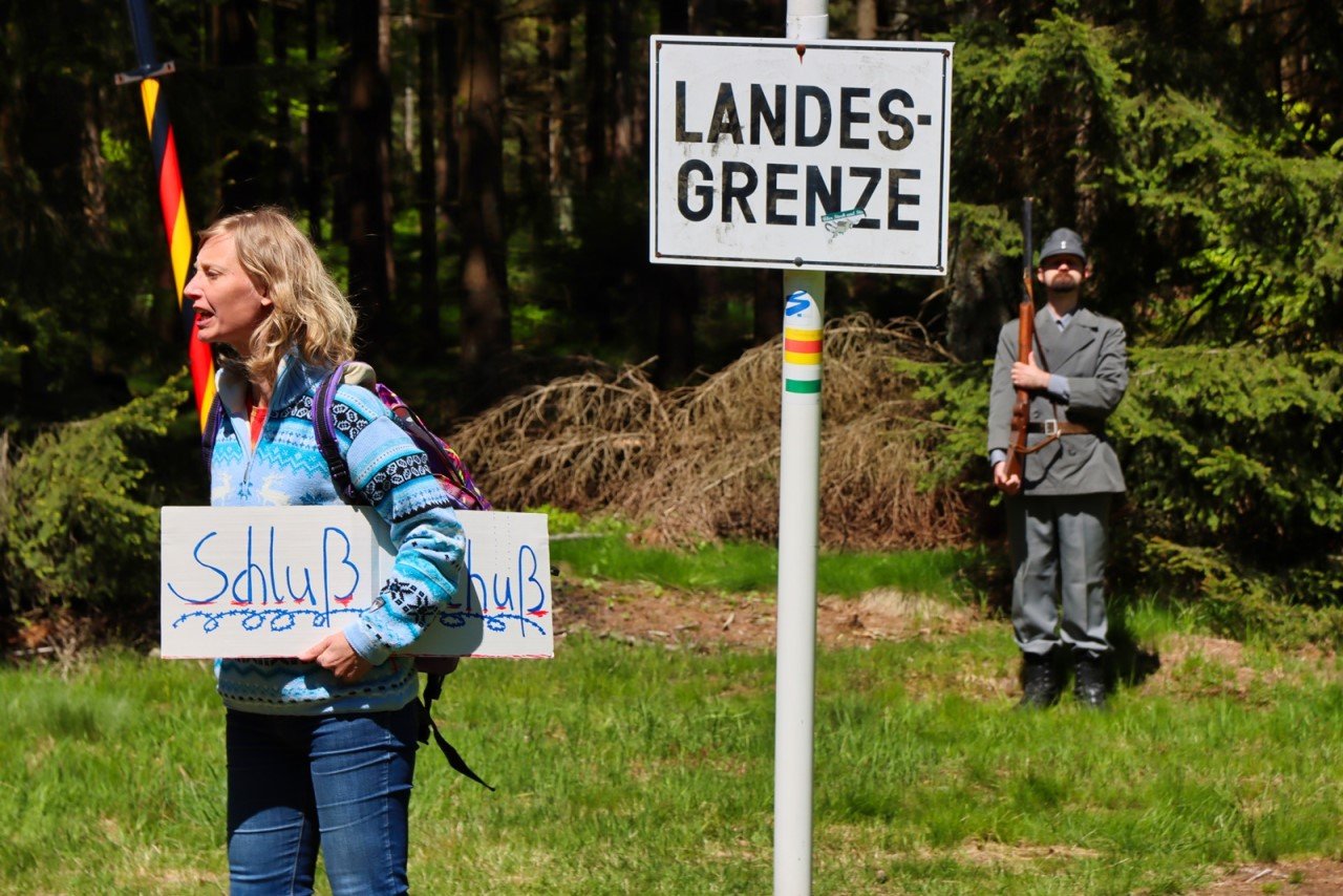 Die Zeitreise beginnt am Skilanglaufzentrum Silberhütte (Landkreis Tirschenreuth) und endet bei den imposanten Überresten der Burg Schellenberg (Landkreis Neustadt/WN). Auf dem Weg dorthin wandert die Gruppe unmittelbar an der deutsch-tschechischen Grenze.