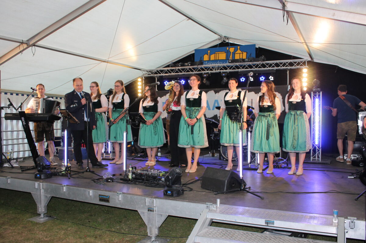 Der Rest des Samstagabends stand im Zeichen der „Bierbank-Party“ mit Stimmungsmusik der Altenstädter Band „Freistaat Live“, bei der auch die Festdamen vor „vollem Zelt“ ihre bis zuletzt gehüteten Gewänder im Trachtenstil vorführten. Mit einem Frühschoppen begann der Sonntag, am nachmittäglichen Festzug nahmen Abordnungen von 28 Vereinen zwischen Vorbach, Kemnath, Floß und Weiherhammer teil.