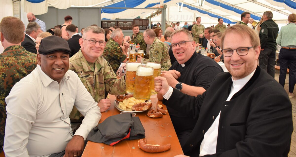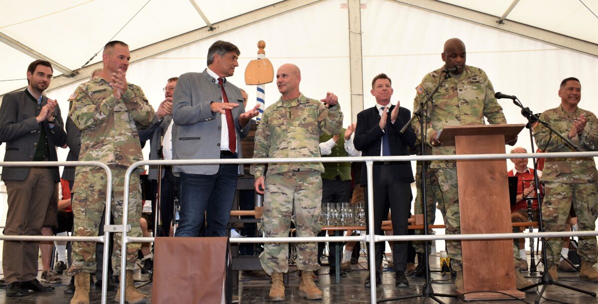 Bürgermeister Edgar Knobloch bedankte sich bei Poole, dass er sein Wort, das er beim Freundschaftsfest im vergangenen Jahr gegeben hat, eingehalten hat. Damals versprach er, dass das Deutsch-Amerikanische Volksfest 2023 auf dem Truppenübungsplatz gefeiert wird. Die Arbeit, den neuen Platz dafür herzurichten, sei immens gewesen. Es habe zeitweise so ausgesehen, wie jetzt der Platz in “Wacken”. Dankesworte gingen an die beiden DAGA-Präsidenten Helmuth Wächter, James Joyce sowie Antony Frazier. Der NATO-Oberbefehlshaber Christopher Cavoli freute sich, wieder hier unter Freunden zu sein. “Als meine Frau Christina und ich von Grafenwöhr weggingen, blieb das Herz hier”, so Cavoli.