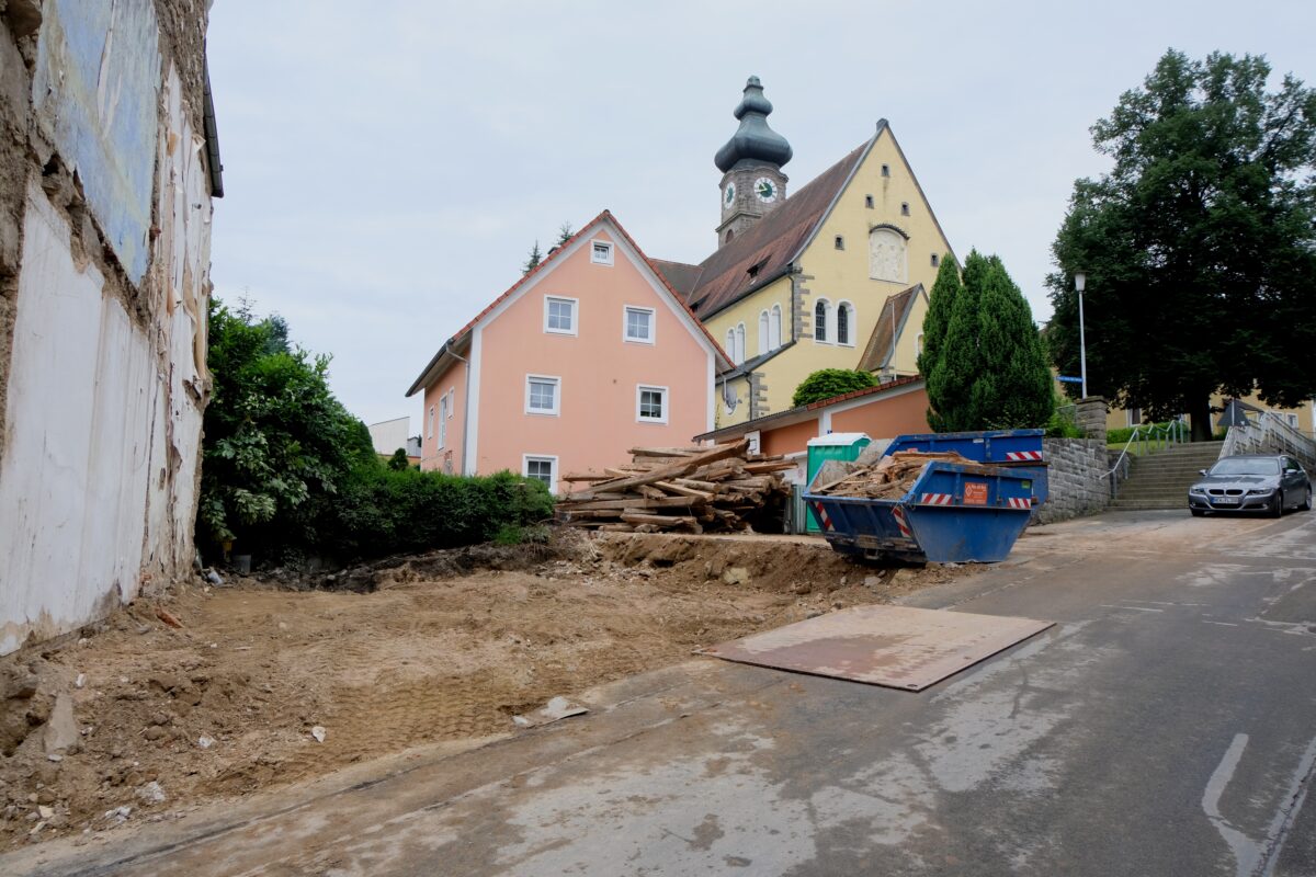 Vor allem den Kirchgängern ist diese neue Perspektive aufgefallen. Jetzt wird die Frage diskutiert, was aus der Baulücke innerhalb des Marktes geschehen wird. Die Zeit wird es mit sich bringen. Jedenfalls ist der Markt durch den Abbruch des Hauses ein Stück Alt Floß ärmer geworden.