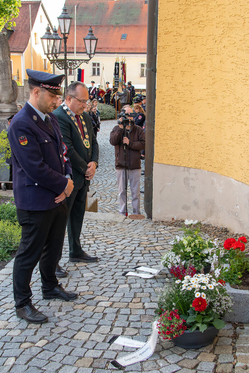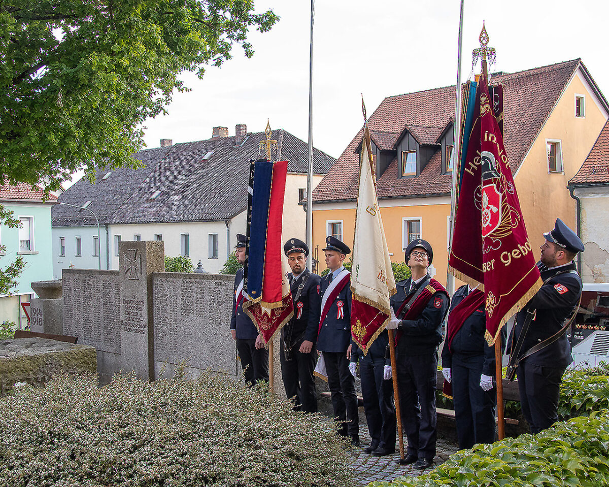 Als die Glockenschläge der Kirchturmuhr um kurz nach 19 Uhr verhallten, führte das Hilfeleistungs-Löschfahrzeug HFL 20 mit Blaulicht und Martinshorn den Ehrenzug vom Großenschwandner Weg zum Marktplatz an.