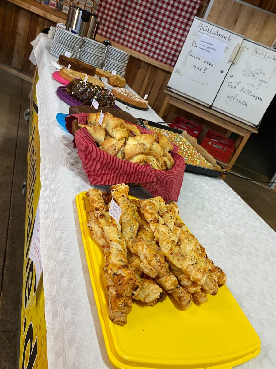 Auch für das leibliche Wohl war bestens gesorgt. Zur Stärkung wurden Weißwürste angeboten, außerdem lockten frisch gebrühter Kaffee und eine reich bestückte Kuchentheke, die von fleißigen Eltern bestückt worden war. Der gemütliche Cafébereich lud zu einer kleinen Pause zwischen den Einkaufstouren ein und bot Gelegenheit für Begegnung und Austausch.