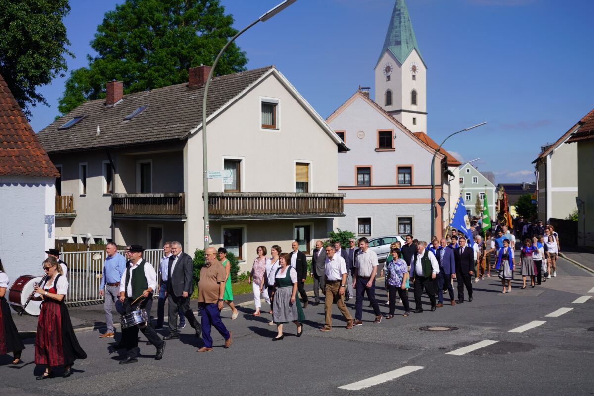 Nachdem der Festzug von der Dreifaltigkeitssäule, angeführt von der Trachtenkapelle Waldthurn, mit vielen Vereinen und Abordnungen zur Kirche zog, lud Pfarrer Norbert Götz die Gläubigen zum Festgottesdienst ein.