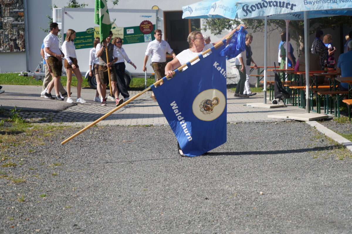 Nach der Kirchweihandacht stieg am Spätnachmittag dann das Pfarrfest. Die engagierten Mitglieder des Pfarrgemeinderats hatten eine Kaffeestube mit reichhaltigem Kuchen-Angebot im Pfarrheim aufgebaut. Umlagert war auch der Grillstand. Das Junge Landvolk Waldthurn sorgte mit Spielen für die Kids für beste Stimmung. Für die nötige Stimmung der vielen Besucher sorgte der Waldthurner Trachtenkapelle, die gekonnt aufgespielte Musik garantierte bei den Gästen, trotz Hitze, beste „Kirwastimmung“.