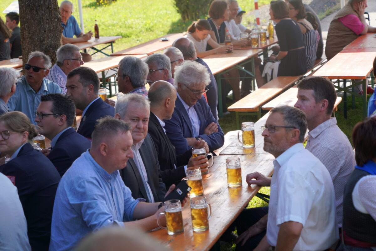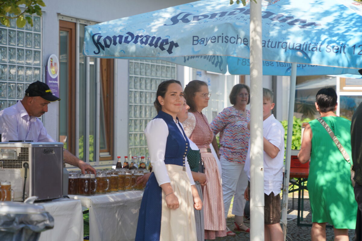 Nach der Festmesse schloss sich ein zünftiger Kirchweihfrühschoppen am Pfarrheim mit der Trachtenkapelle an. Pfarrgemeinderatssprecherin Birgit Bergmann verteilte traditionell an die Vereinsabordnungen Getränkegutscheine.