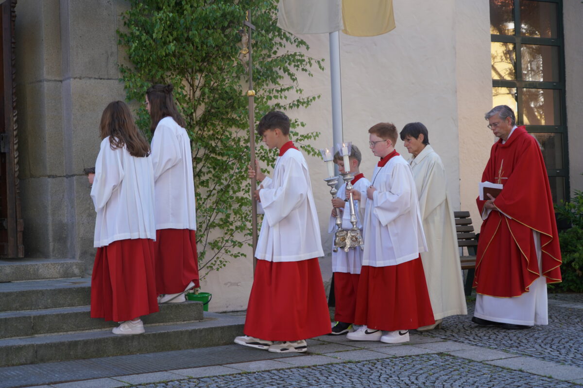 Fast auf den Tag genau vor 42 Jahren hat Diözesanbischof Manfred Müller die Pfarrkirche am 26. Juni 1983 geweiht. Jesus habe damals Wohnung im Gotteshaus bezogen – die Kirche ist seither das „Wohnzimmer der Familie Gottes“. „Jesus Christus braucht und will uns alle“ sagte Pfarrer Götz. An der Orgel begleitet Hans Feiler die Festmesse, Michael Troidl sprach die Lesung.