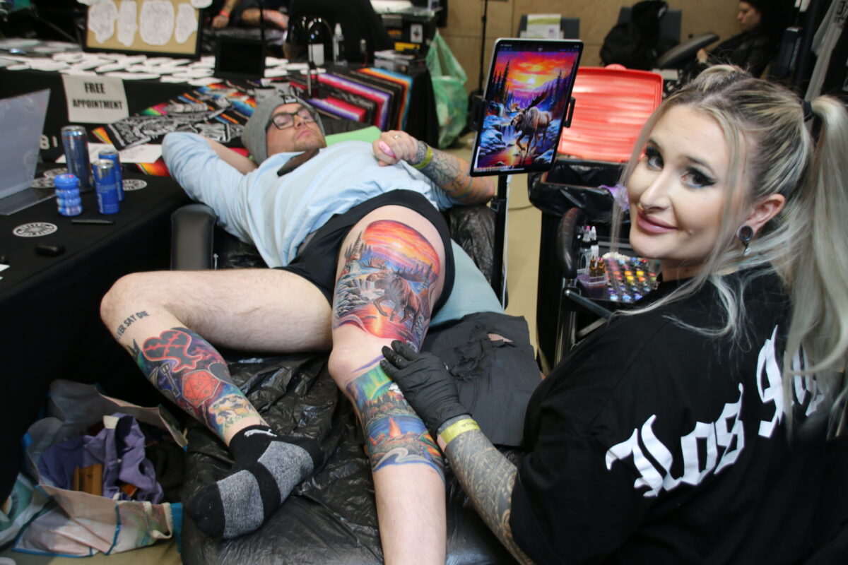 Dabei stecken für sie besondere Emotionen in dem Motiv, wie sie noch verraten will. Um das Tattoo zu vollenden, braucht sie fast den ganzen Samstag und Sonntag – für einen Rundgang und sich umzuschauen, zu quatschen oder sich neue Inspirationen holen, bleibt kaum Zeit.