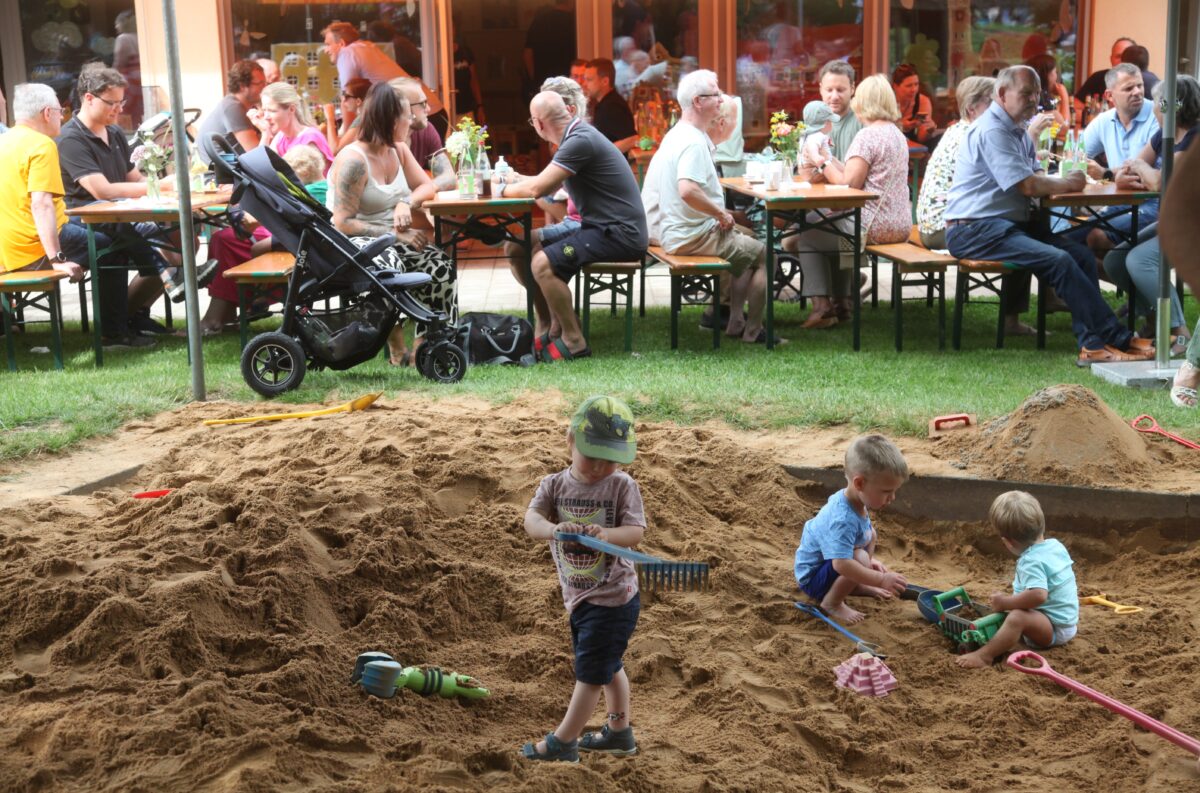 In den Innenräumen erinnerten Ausstellungen an den Werdegang der Einrichtung, die 1974 gebaut und 2011 abgerissen wurde, um an gleicher Stelle neu zu entstehen. “Jetzt müssen wir erneut erweitern”, sagt Gaby Schönberger, um die in der Schule ausgelagerten Gruppen zurückholen zu können. Bei St. Martin handelt es sich um einen Naturpark-Kindergarten, der den Kindern die Natur in ihrer Vielfalt erleben lässt. Die Brauchtumspflege gehört zu den weiteren Schwerpunkten der Kita, deren Motto lautet: “Jedes Kind verdient es, mit seinen individuellen Stärken und Schwächen gefordert und gefördert zu werden”.