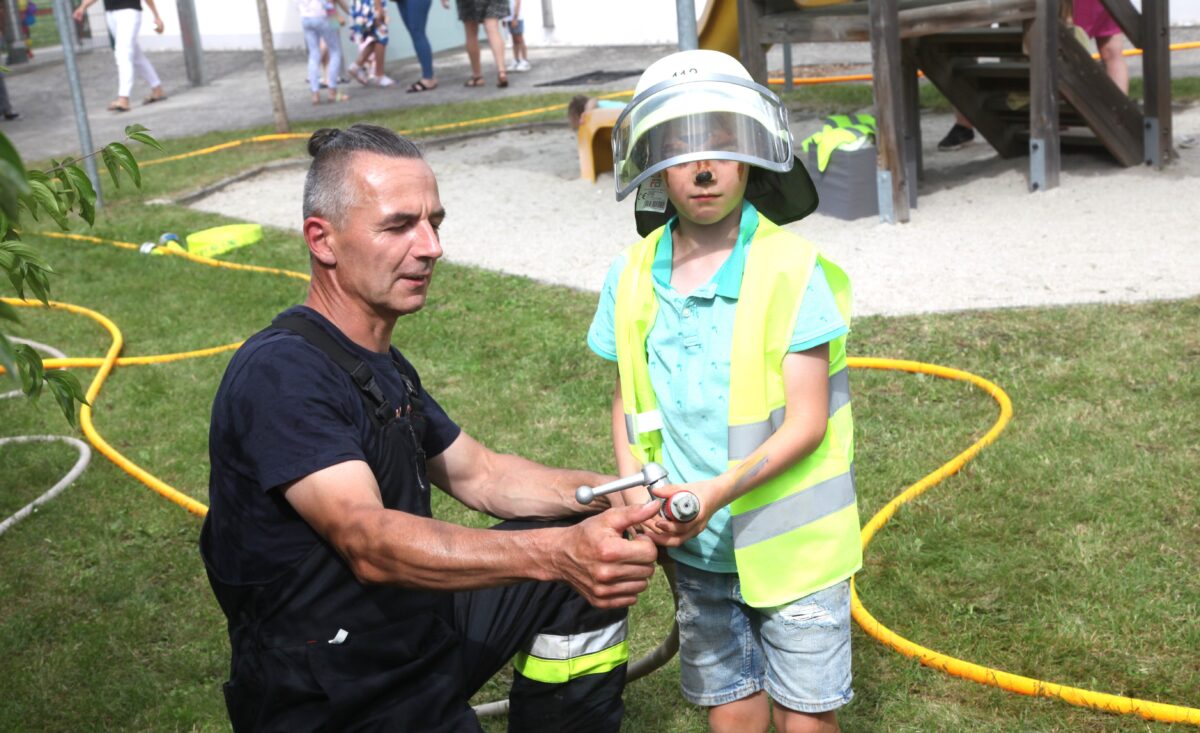 Während sich die Kinder zum Spielen über das weitläufige Gelände verteilten, ließen sich die Eltern Weißwürste und Getränke servieren. Mit dem Programm ging es Schlag auf Schlag weiter. In einem Rollenspiel machten sich die Kinder auf eine Reise durch die Stadt Pfreimd. Gaby Schönberger bedankte sich bei den örtlichen Vereinen für die Unterstützung während des ganzen Jahres und speziell bei der Feuerwehr, die beim Kinderfest mit einer eigenen Station vertreten war.