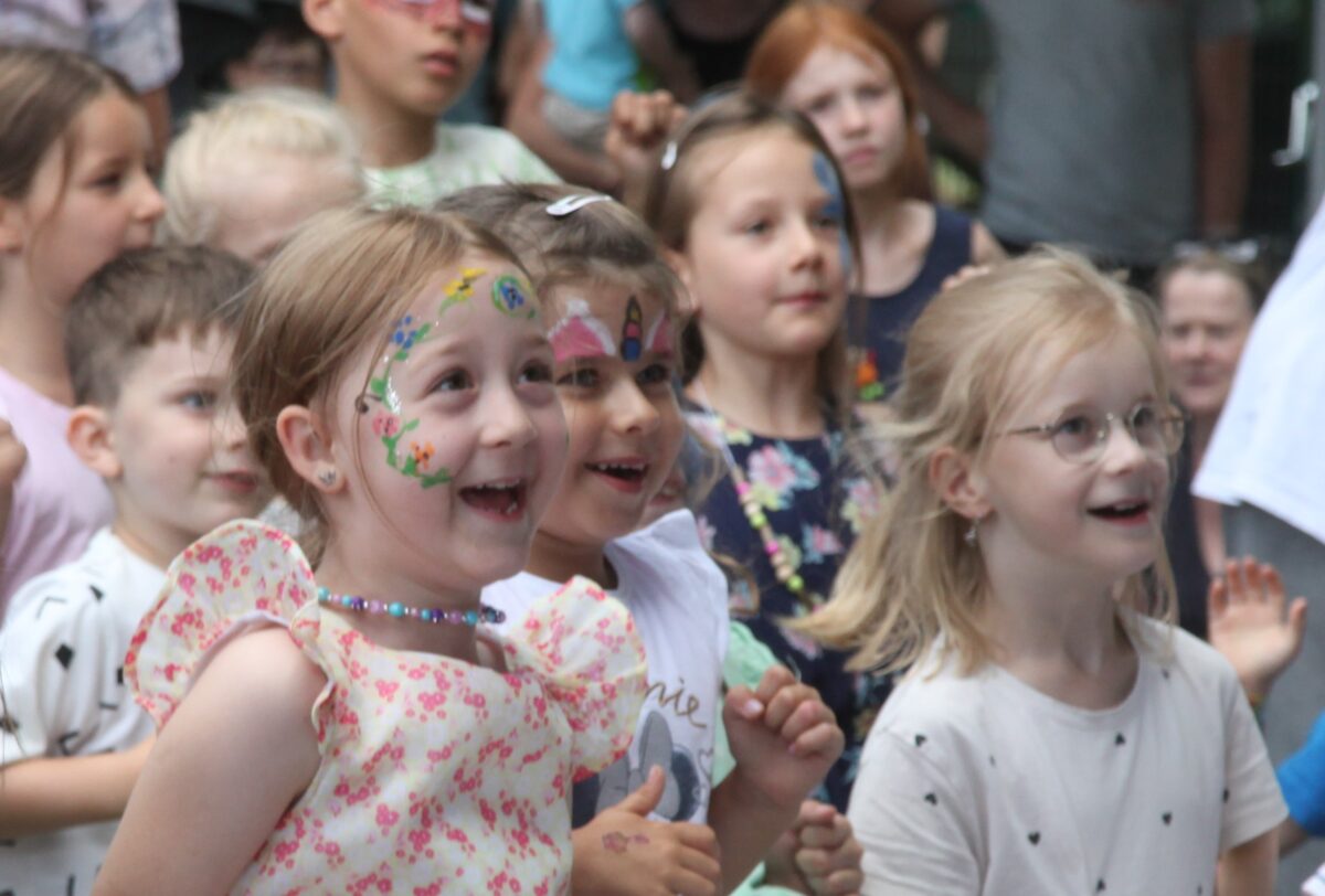 Das Jubiläum wird den Kindern und den Eltern noch lange in Erinnerung bleiben. Der Festtag endete nämlich mit einem Konzert der bekannten Animationsmusiker “Rodscha aus Kambodscha und Tom Palme”. Nicht nur die Kinder hüpften und tanzten mit Begeisterung vor der Bühne, auch die Mitarbeiterinnen, Eltern und Großeltern ließen sich von der Partystimmung anstecken.