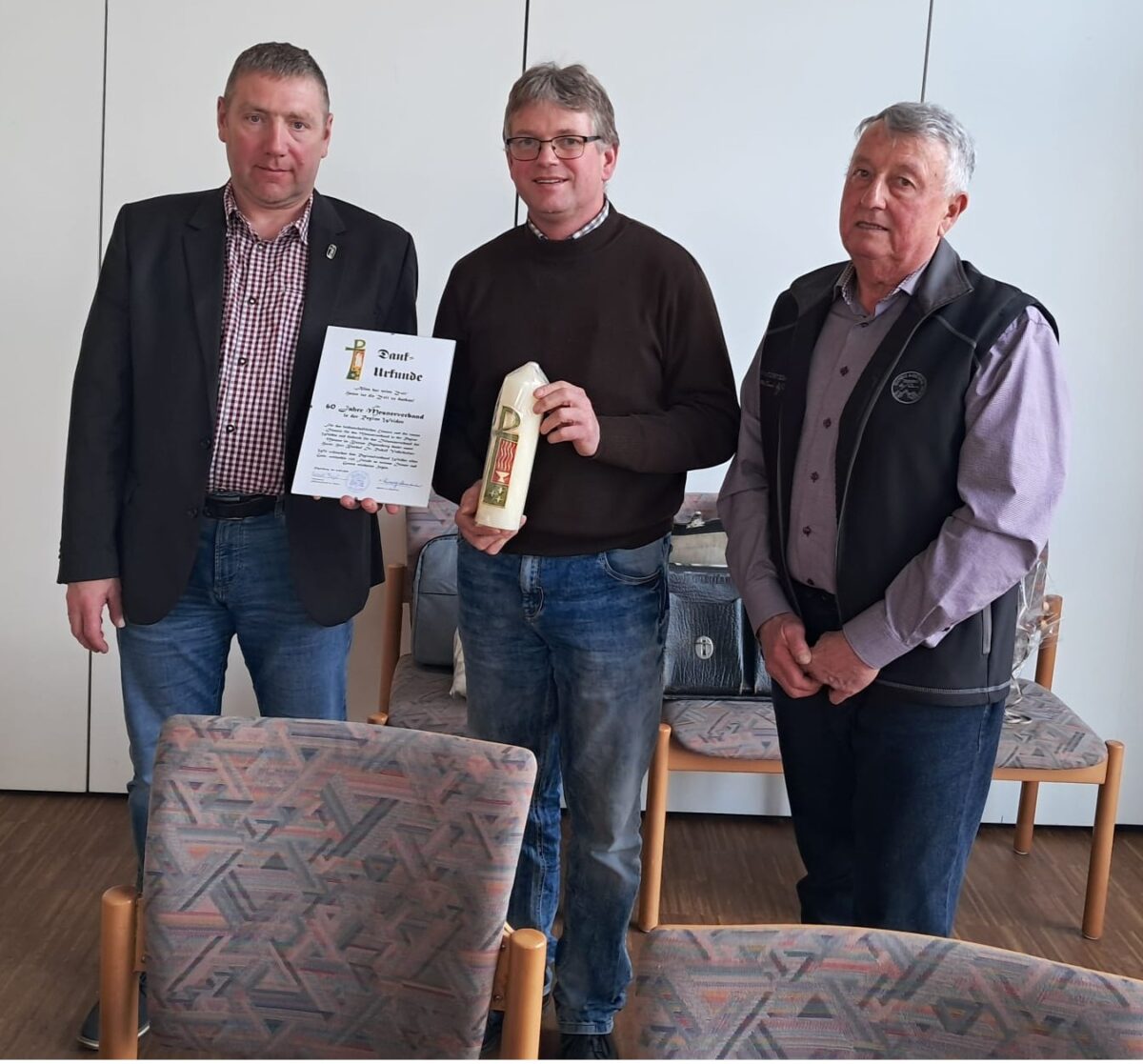 Der stellvertretende Diözesanvorsitzende Josef Pflug überbrachte die Glückwünsche des Bischofs von Regensburg und verlas die Dankurkunde. In Erinnerung an das Jubiläum überreichte er eine schön geschmückte Mesner-Kerze. Er wünschte weiterhin guten Zusammenhalt und Freude an der Arbeit.