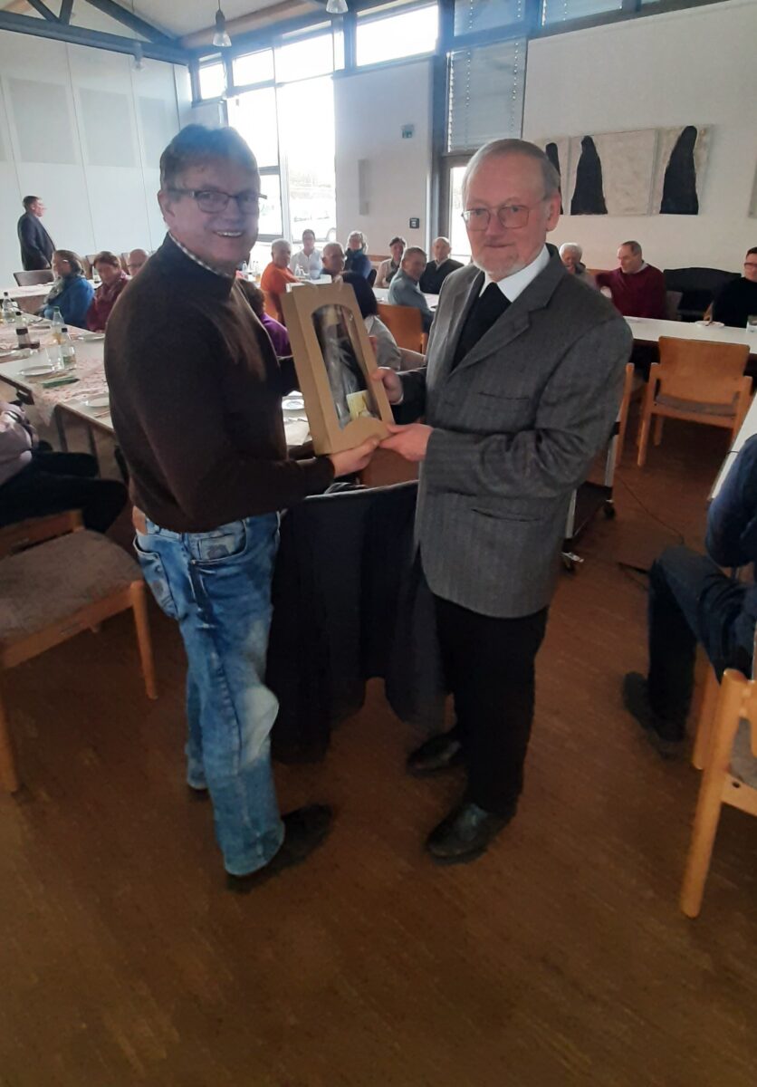 Wolfgang Seegerer leitete die folgende Besprechung der anstehenden Regularien und Termine. Nach einer deftigen Stärkung und ausklingenden Gesprächen beendete Stadtpfarrer Kopp mit einem Gebet, dem Segen und den besten Wünschen für die Fastenzeit die weltliche Feier des Jubiläums.