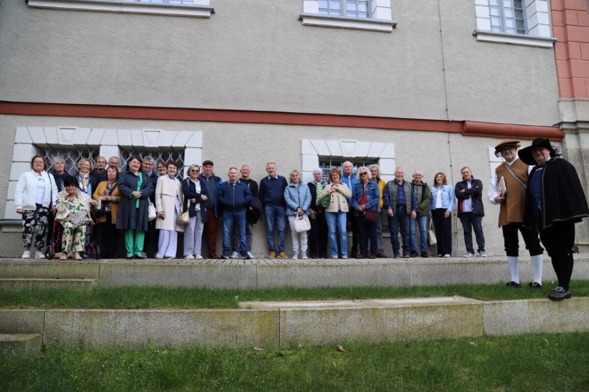 Vor 60 Jahren traten damals die Buben und Mädchen der Jahrgänge 1956/1957 zur Erstkommunion an den Tisch des Herrn. Sie trafen sich bereits am Vortag des Weißen Sonntags zum gemeinsamen Klassentreffen. Am Schlossbrunnen wurden sie von zwei historischen Figuren aus der Geschichte der Kreisstadt zur historischen Führung durch die beiden Lobkowitz-Schlösser begrüßt. Fürst Wenzl Eusebius von Lobkowitz (Bernhard Knauer) und Zickl (Max Peter), damals der höchste Beamte in der Stadt, vermittelten dabei interessante geschichtliche Details rund um die beiden Schlösser, das Adelsgeschlecht und das damalige Leben in der Stadt Neustadt. Rainer Karl, der das Treffen organisierte, hatte am Abend Tische in der Taverne Santorini reserviert. Dort hatten sich die ehemaligen Schülerinnen und Schüler beim Abendessen viel zu erzählen.