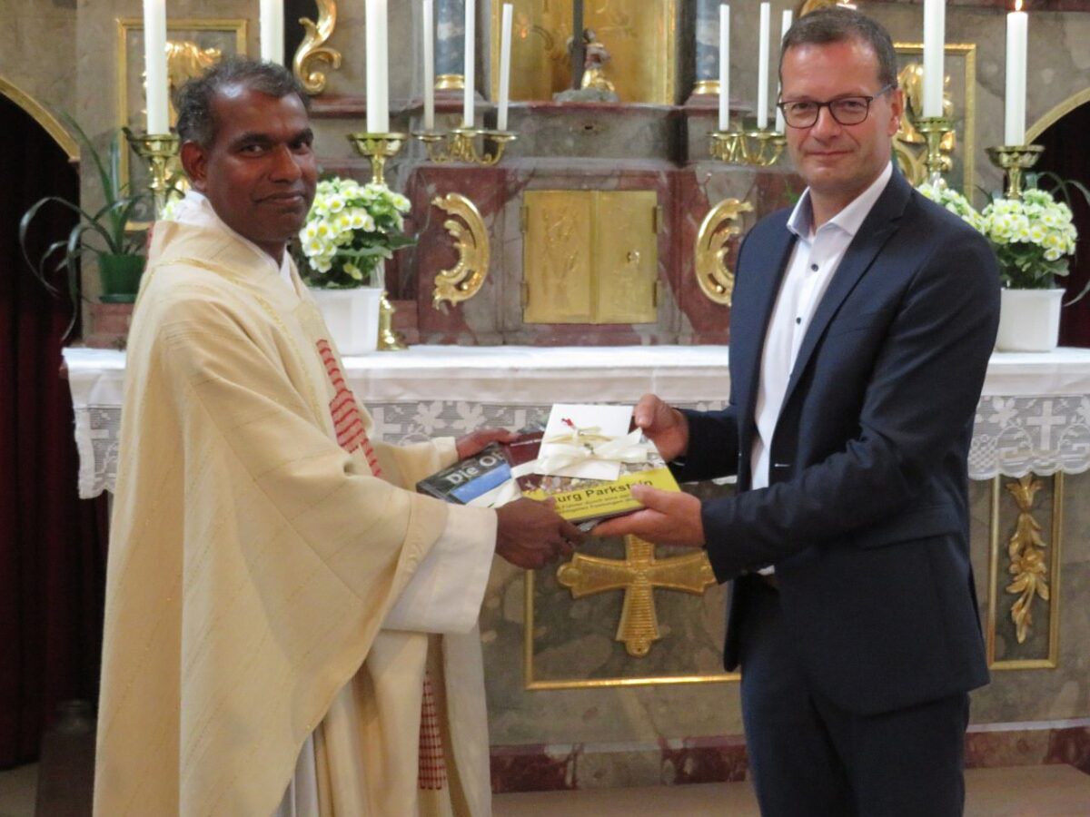 In einem feierlichen Gottesdienst wurde Pfarrer Pennoraj Tharmakkan von der Pfarrgemeinde Parkstein verabschiedet. Er bedankte sich mit eindringlichen Worten bei allen, die ihn in diesen zehn Jahren unterstützt haben. Vor allem die herzliche Aufnahme hob er besonders hervor.