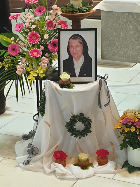 Am 11. Juni verstarb Schwester Maria Goretti in Neubiberg, dem Ort, der ihren Lebensabend prägte. Die Beerdigung fand auf dem Ostfriedhof in München statt, und das Requiem wurde in der Kapelle des Maria Theresia Heims gehalten. Pater Kummer zelebrierte die Trauerfeier, bei der Mitschwestern, Neffen und Nichten von „Tante Resi“ Abschied nahmen. Das Sterbebild, geschmückt mit dem Kleßberger Dorfkreuz, erinnert an eine Frau, die trotz der Widrigkeiten des Lebens Halt in ihrem Glauben und ihrer Berufung fand.
