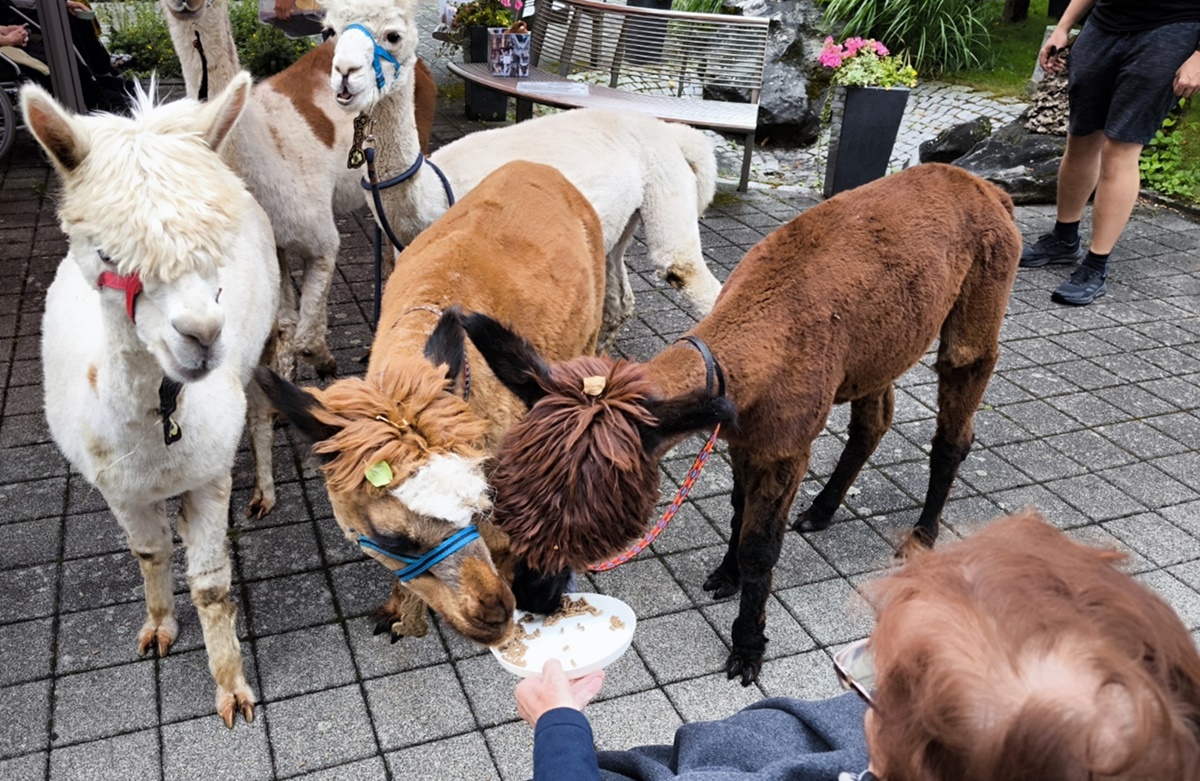 Während des Besuchs konnten die neugierigen Bewohner die Alpakas streicheln und füttern. Es war eine willkommene Abwechslung für die Senioren, die den Kontakt zu den Tieren sichtlich genossen.