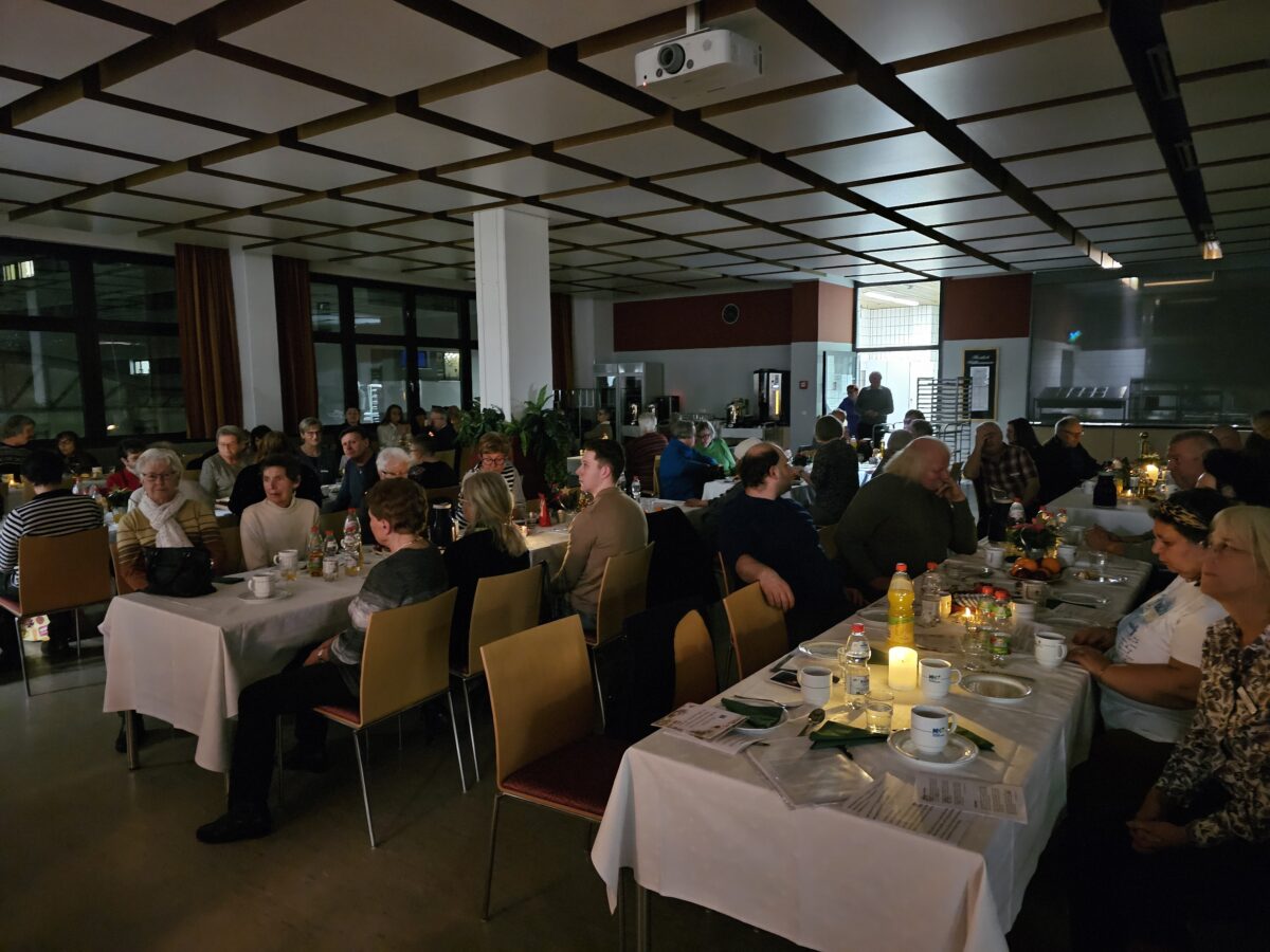 Über drei Stunden später waren viele Gäste und Ehrenamtliche miteinander ins Gespräch gekommen, manche kannten sich noch von Weihnachtsfeiern „vor Corona“, wurden Nummern ausgetauscht und von vielen hörte man: „Zum Glück habe ich meine Scheu überwunden und bin allein hergekommen. Auf jeden Fall besser als Alleinsein.“ Zum Abschied spendete Pfarrer Haschker allen Gästen den Weihnachtssegen, bevor es nach Hause ging – für viele der Gäste mit dem ehrenamtlichen Fahrservice.