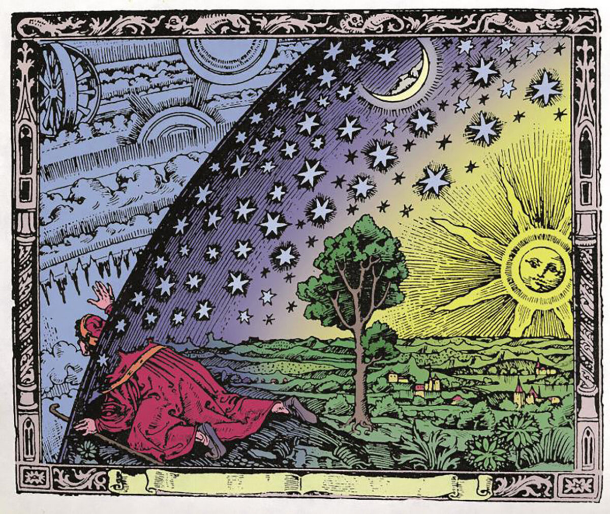 Denn darum gehe es auch: „Wir können uns gegenseitig zum Staunen verhelfen.“ Witte sei irgendwann auf ein Bild gestoßen, einen niederländischen Holzschnitt vom Ende des 16. Jahrhunderts mit dem ptolemäischen Weltbild, als die Erde noch eine Scheibe schien: „Und darauf lüpft ein kleines Menschenkind die Decke des Himmels und schaut hinaus – das sind wir.“ Sehr bildhafte Menschen seien die Freimaurer, die den Mantel über den Geheimnissen des Lebens ein wenig anheben, um ein Stück Erkenntnis zu erhaschen.