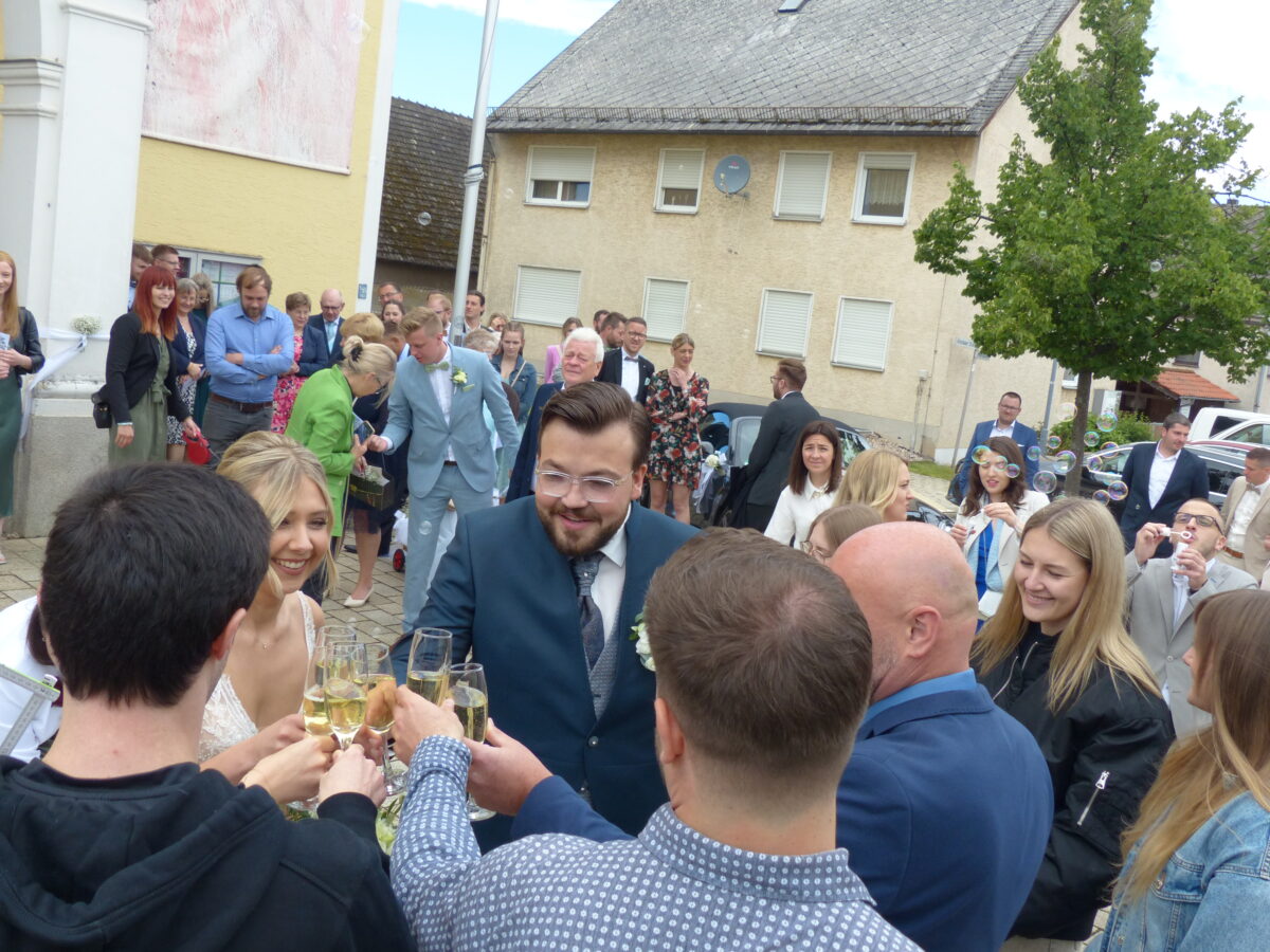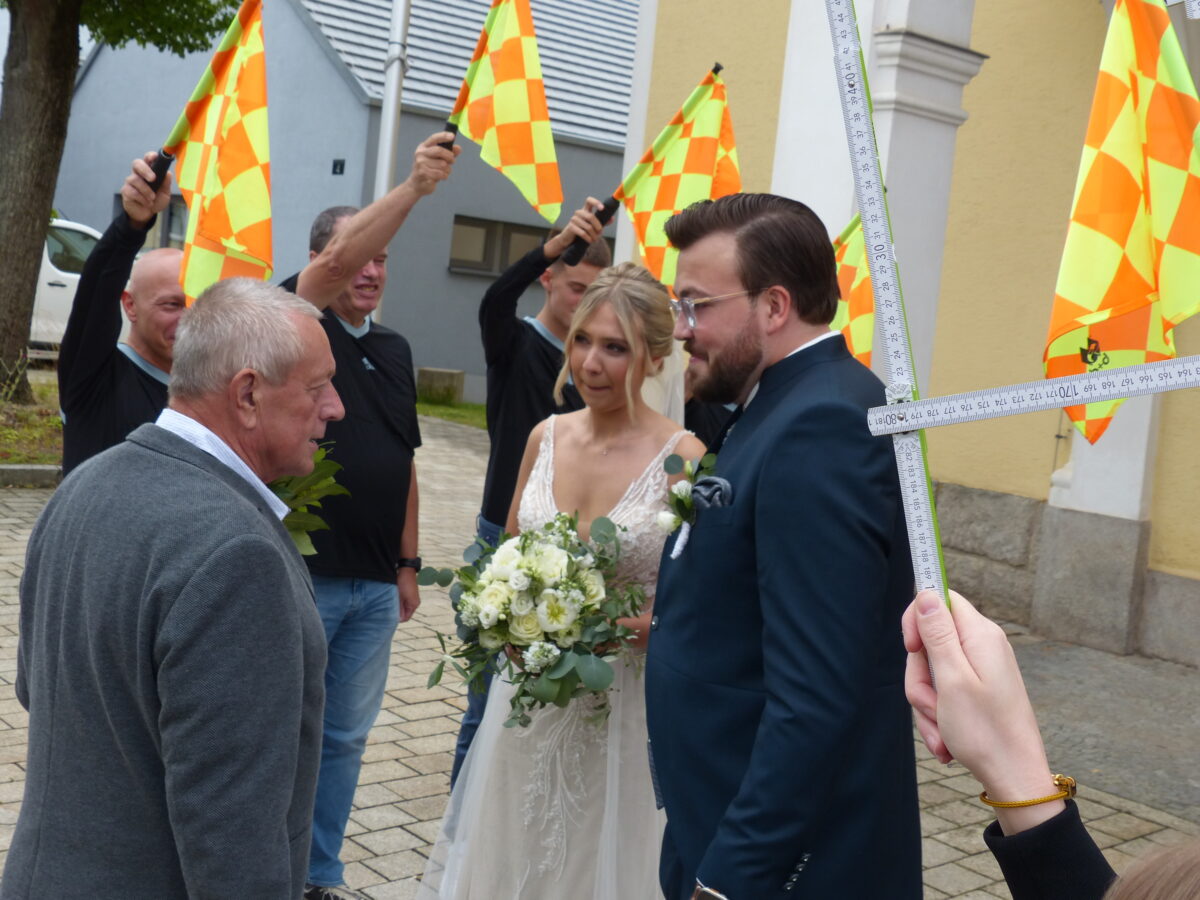 Seit 15 Jahren pfeift Andreas Frieser Fußballspiele an, derzeit in der Bezirksliga. Nun galt der Pfiff für einen neuen Lebensabschnitt mit Lisa Gradl: Beide haben am Samstag den Bund der Ehe in der Heimatkirche Herz Jesu des Bräutigams geschlossen. Der Name Frieser ist nicht nur in Kohlberg vom Gasthaus Frieser bekannt. Andreas Frieser wurde vor 28 Jahren als drittes und jüngstes Kind der Eheleute Rita und Richard Frieser geboren. Schon als Kind half er fleißig in der Gastwirtschaft mit, schlug aber nach der Schule einen anderen Berufszweig ein. Heute ist er Online-Marketing-Manager.