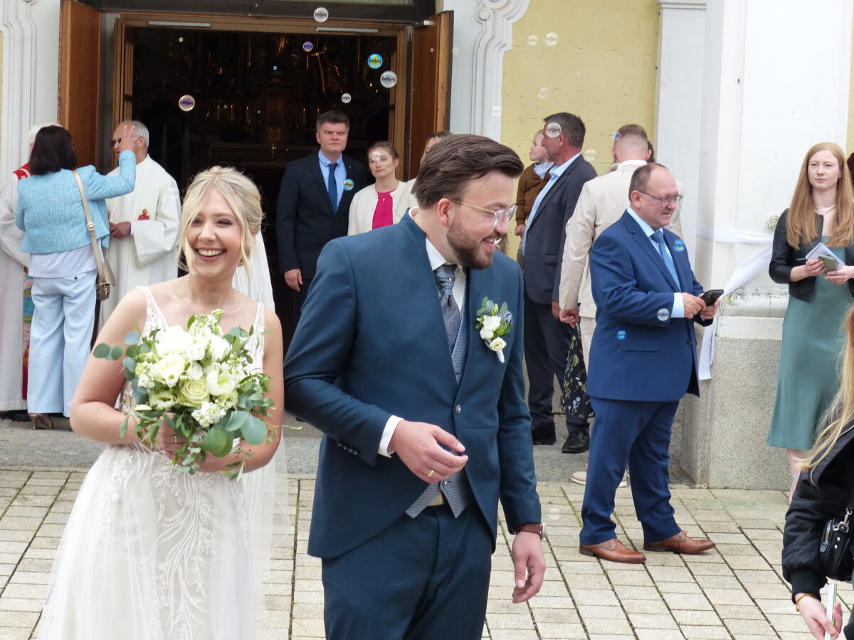 Die junge Braut Lisa Gradl stammt aus Rothenstadt. Lisa ist die älteste von zwei Töchtern von Manfred und Birgit Gradl. Die Braut ist im Controlling als Gruppenleiterin bei der Sparkasse Weiden beschäftigt. Neben dem Motorradfahren betreibt sie auch gerne Sport oder liest gerne. Das Brautpaar begleiteten die Blumenkinder Josefine, Patenkind von Andreas, Neffe Leopold und Nichte Karla. Alle Gottesdienstbesucher konnten das klare und laute „Ja“ des Brautpaares vernehmen. Kennengelernt hat sich das Paar vor acht Jahren, während des Studiums an der OTH Amberg-Weiden.