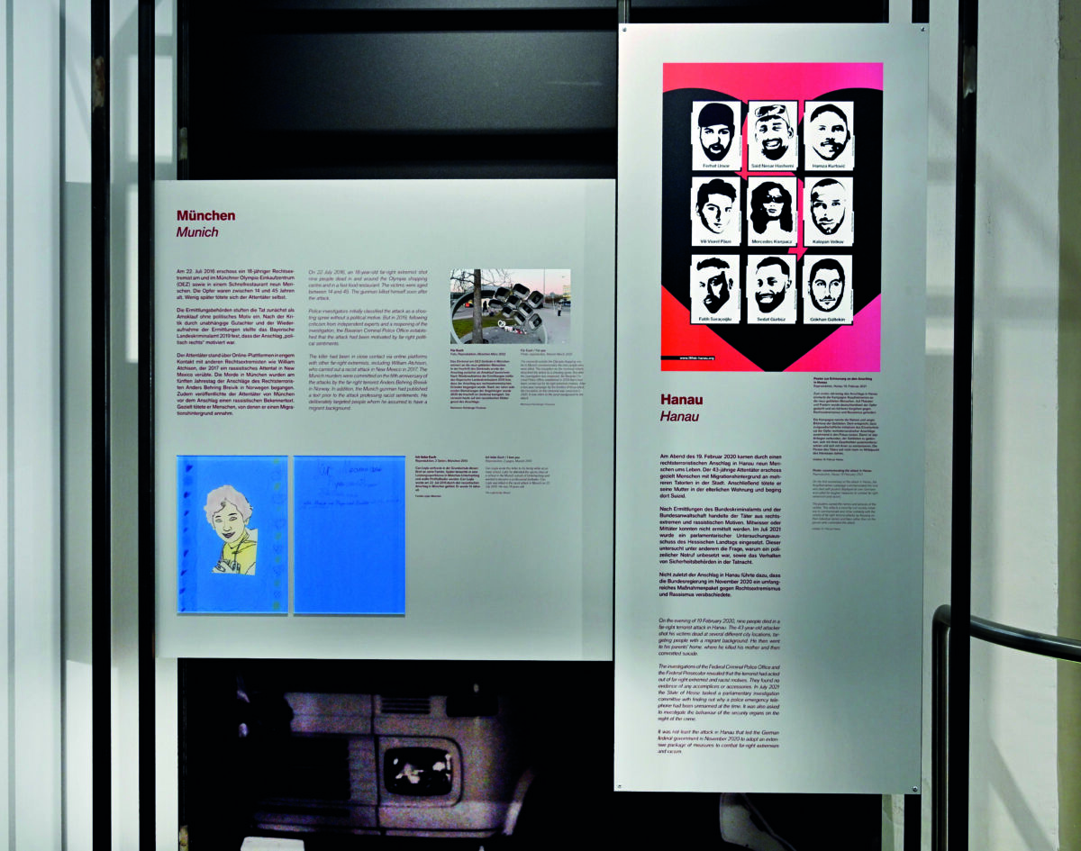 Im Mittelpunkt stehen die Opfer und die gesellschaftlichen Folgen dieser Gewaltakte. Die Ausstellung regt zum Nachdenken darüber an, wie Politik und Gesellschaft mit rechtsterroristischen Bedrohungen umgehen und welche Verschwörungserzählungen und Selbstermächtigungsstrategien solche Taten begünstigen.