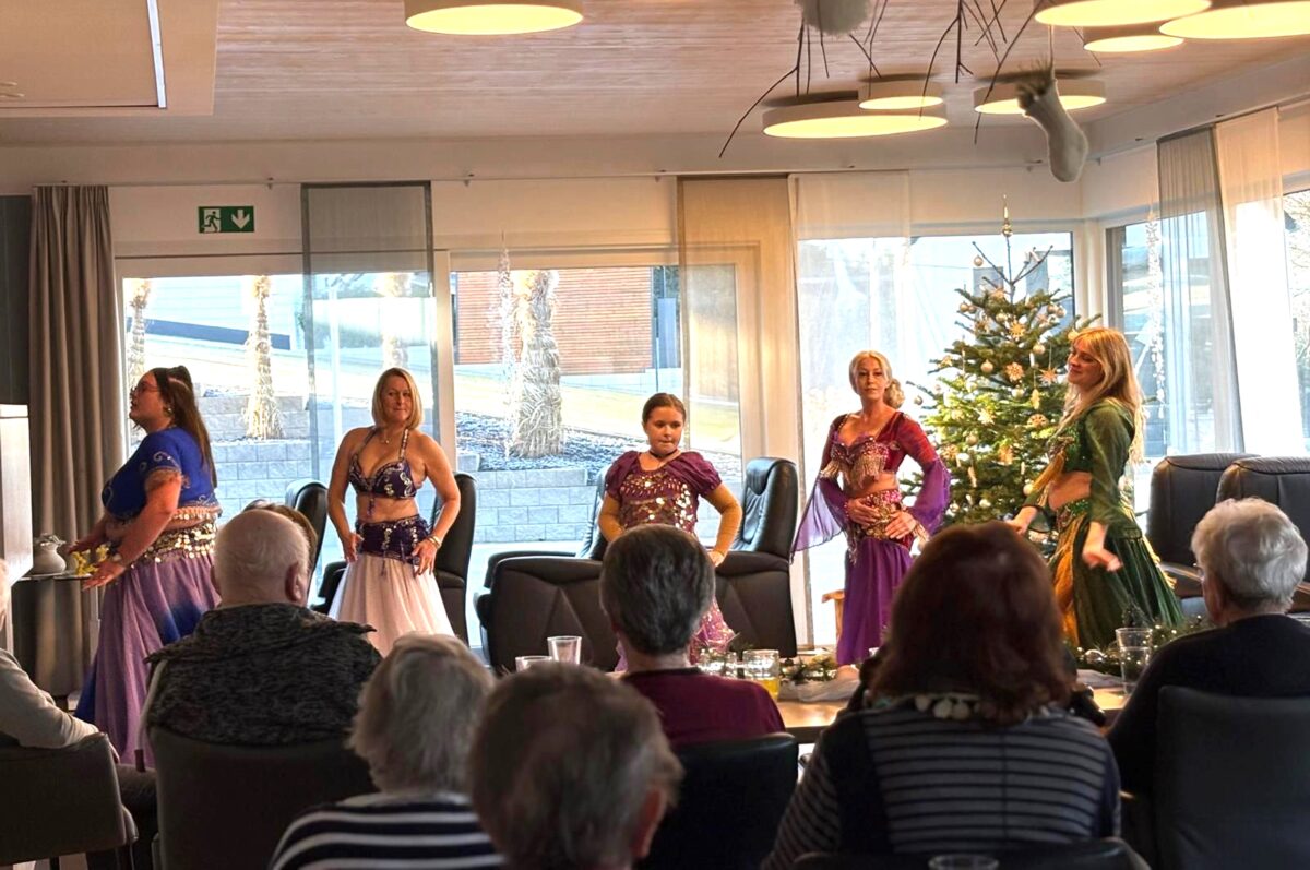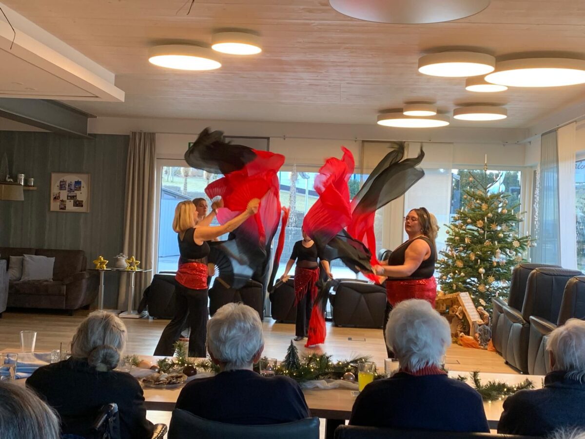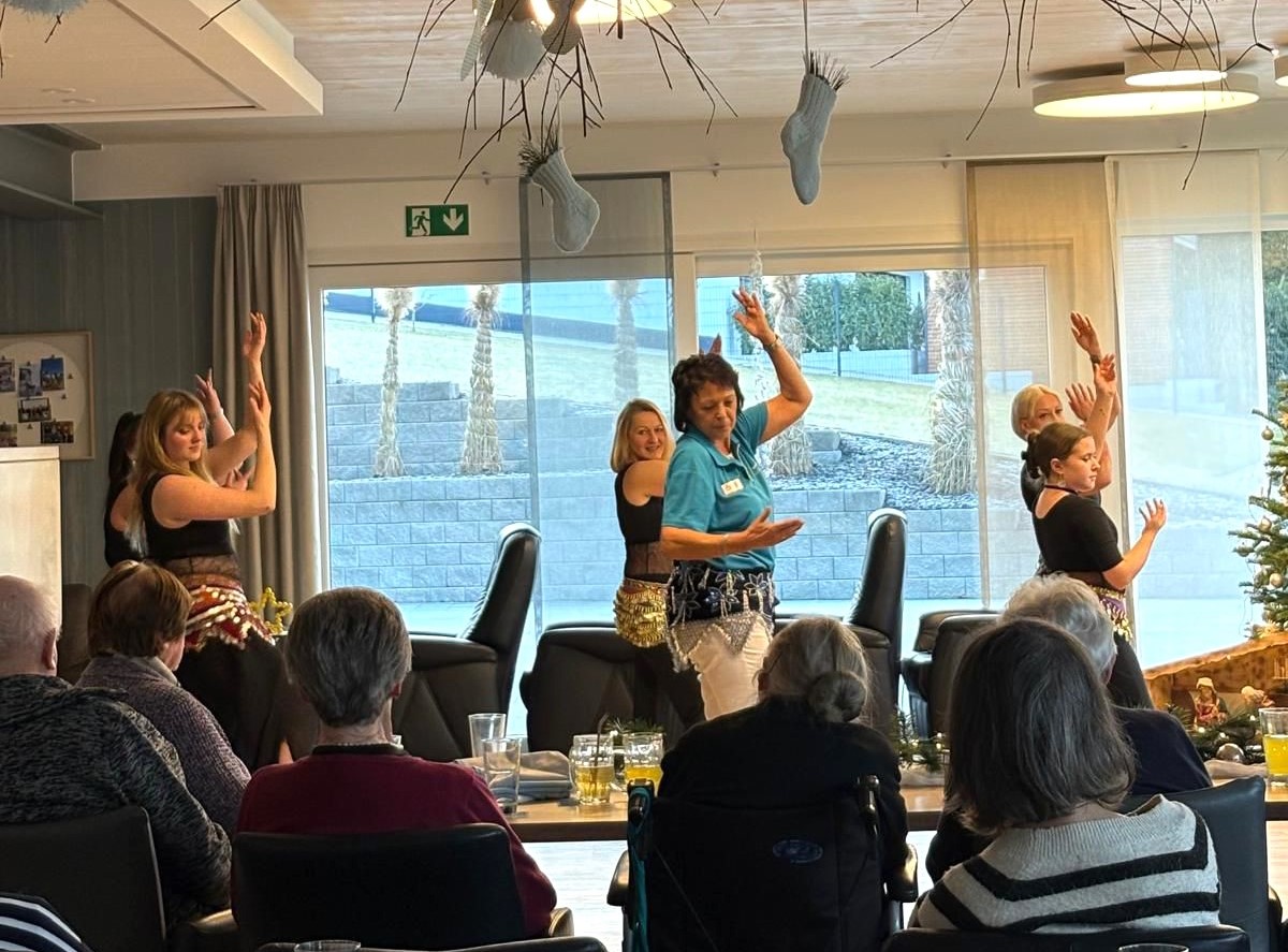 Mit fließenden Bewegungen, farbenfrohen Kostümen und viel Ausdruck präsentierten die Tänzerinnen verschiedene Elemente des orientalischen Tanzes. Schnell sprang die Freude am Tanz auf die Tagespflegebesucher über. Viele ließen sich anstecken, klatschten im Rhythmus oder versuchten sogar, selbst mitzutanzen. Die besondere Art des Bauchtanzes erwies sich als mitreißend und sorgte für strahlende Gesichter.