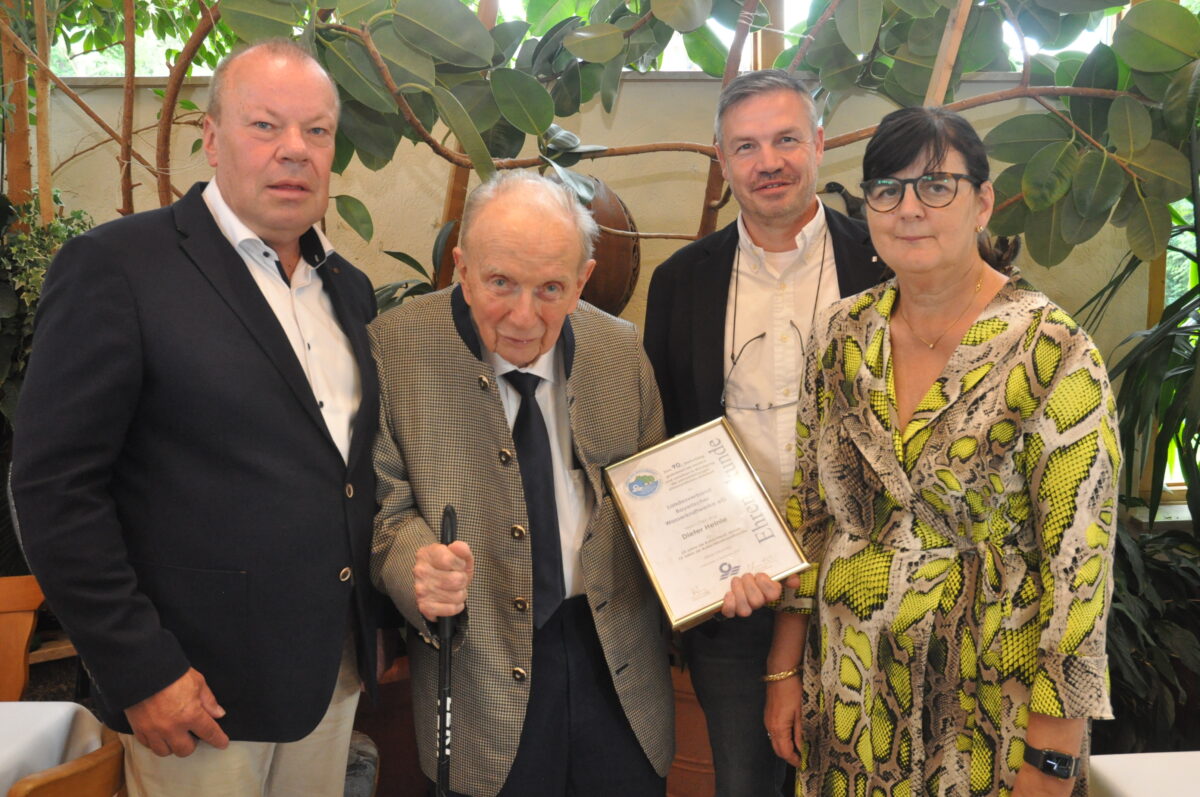 Im Namen des Bundesverbands Deutscher Wasserkraftwerke (BDW) e. V. hob Präsident Hans-Peter Lang die Verdienste des nach wie vor eloquenten Seniors hervor. Lang wünschte auch als Vorstandsvorsitzender des Landesverbands Bayerischer Wasserkraftwerke eG alles Gute und zeichnete Heinle zum Dank für 23 Jahre im Aufsichtsrat, darunter 15 Jahre als Vorsitzender, mit einer Ehrenurkunde aus.