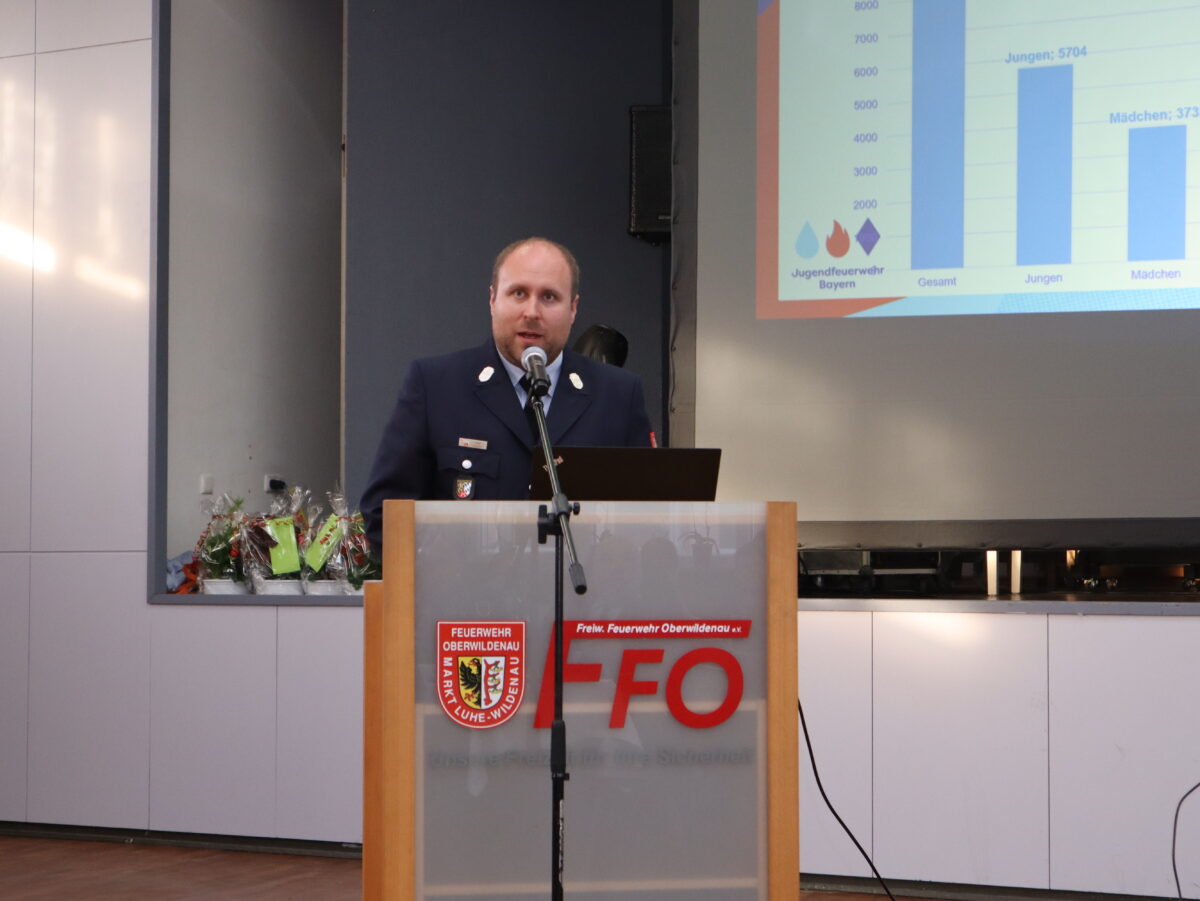 Hier leitete er direkt über zu den Berichten aus den Fachbereichen. Sein Stellvertreter Fabian Kaptein stellte die Statistik der Jugendfeuerwehr Oberpfalz für das vergangene Jahr ausführlich dar. Hier gab es gegenüber dem Vorjahr ein Plus von 622 auf gesamt 9441 Mitglieder (5704 Jungen, 3732 Mädchen) in den 907 oberpfälzer Jugendfeuerwehr-Gruppen, bei denen auch 2285 Betreuer Dienst leisten. In die aktive Wehr konnten 1122 Jugendliche übertreten.