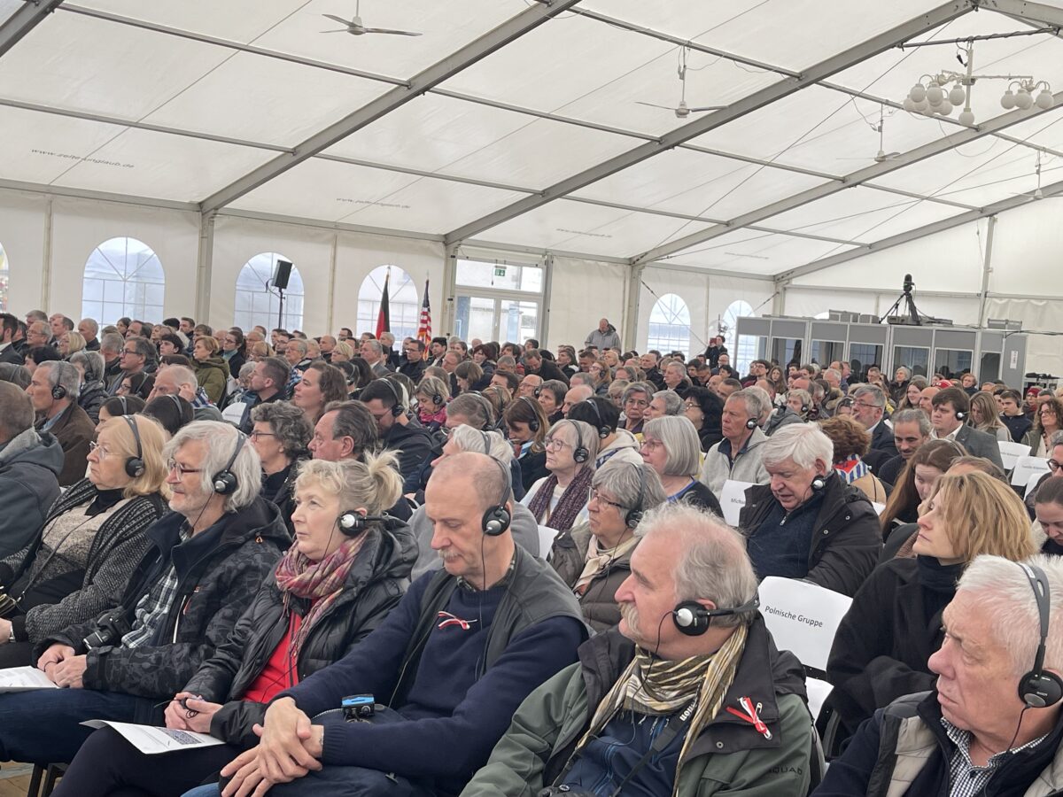 Die Familien ehemaliger Häftlinge füllen die ersten Reihen im festlichen Zelt. Mit Headsets hören sie Übersetzungen der Ansprachen. Stellvertretend für die internationalen Gäste begrüßt Gedenkstättenleiter Jörg Skriebeleit eine Gruppe Italiener, betreut von Friedo Peterhans aus Weiden: “Carissimi amici italiani!” Die Italiener waren zur Eröffnung einer neuen Ausstellung über den “Transport Nummer 81” aus Bozen gekommen. Nicht einmal 100 von 423 Deportierten überlebten das KZ Flossenbürg und seine Außenlager.