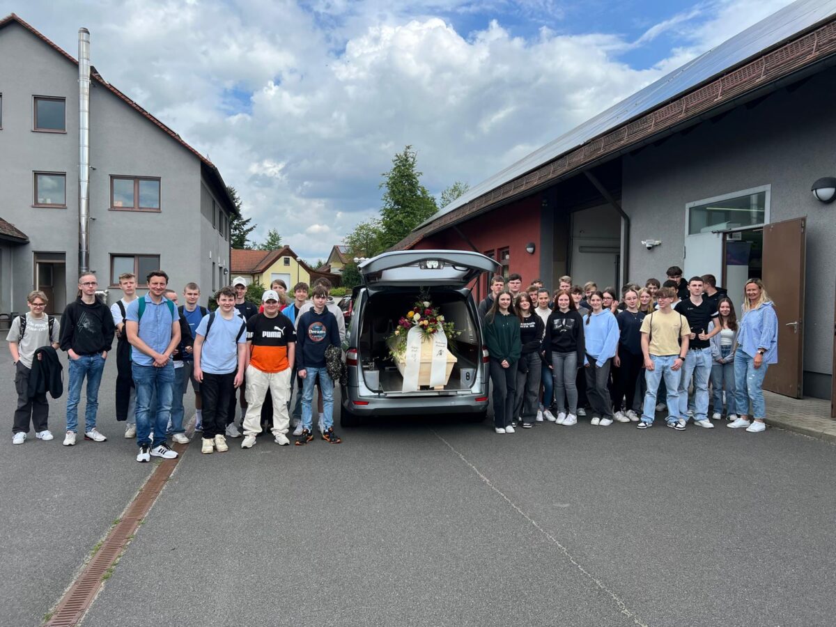 Daher besuchten im Rahmen des Religions- und Ethikunterrichts die neunten Klassen der Realschule am Tor zur Oberpfalz das Bestattungsunternehmen Neumann in Speicherdorf. Nach einem freundlichen Empfang durch die Familie Neumann bekamen die Schülerinnen und Schüler auf einfühlsame Weise einen Einblick in die vielfältigen Arbeitsbereiche eines Bestattungsunternehmens.