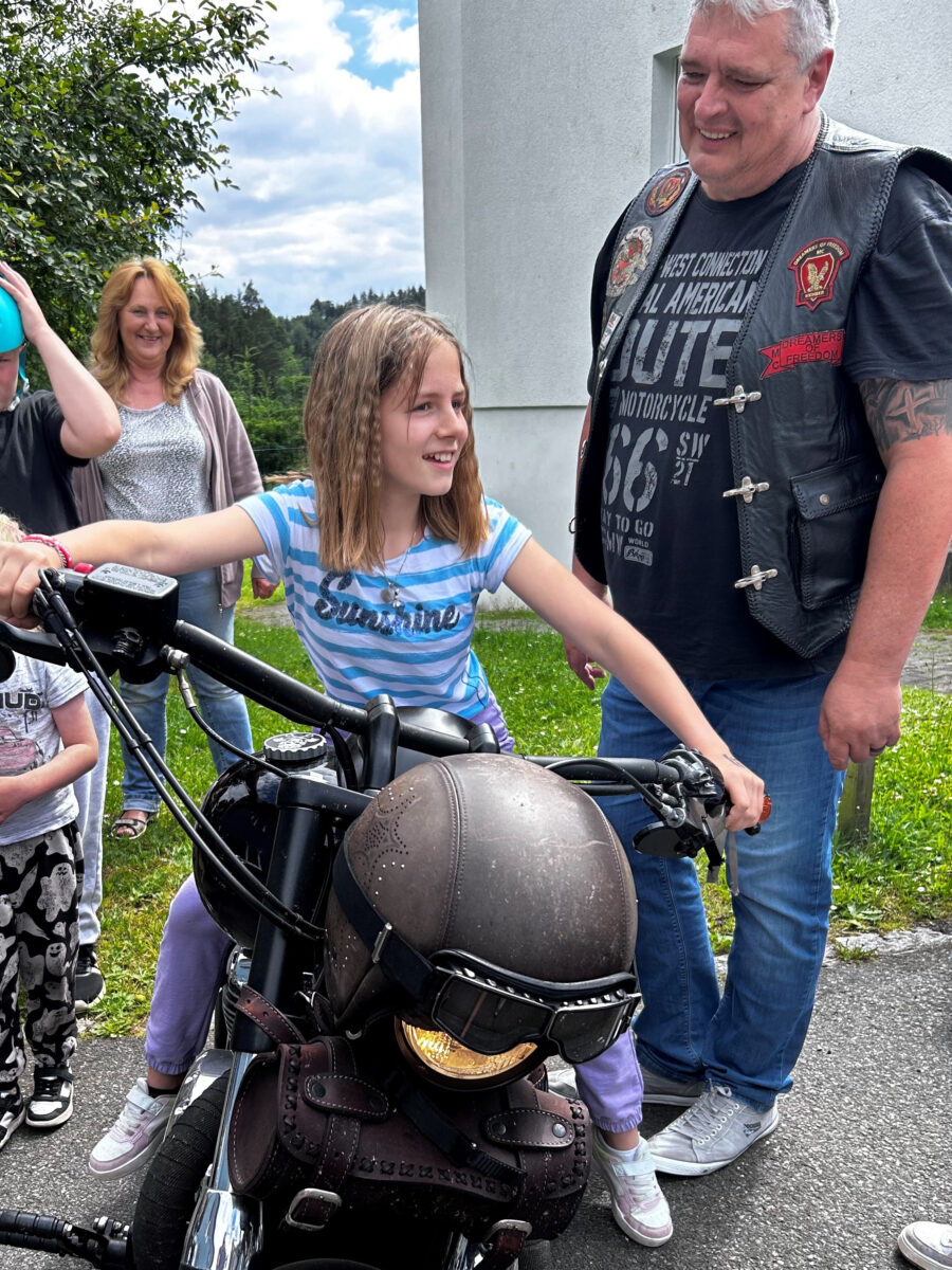 Die meisten Kinder sind selbstverständlich auch eine Runde mitgefahren, einige haben sich sogar gleich wieder hinten angestellt. Die Biker waren sich einig – es war schön zu sehen, wie glücklich die Kinder an diesem Tag waren, einfach eine tolle Aktion abseits des Alltags. Nicht nur die kleinen Gastgeber werden sich noch lange an diesem Tag erinnern.