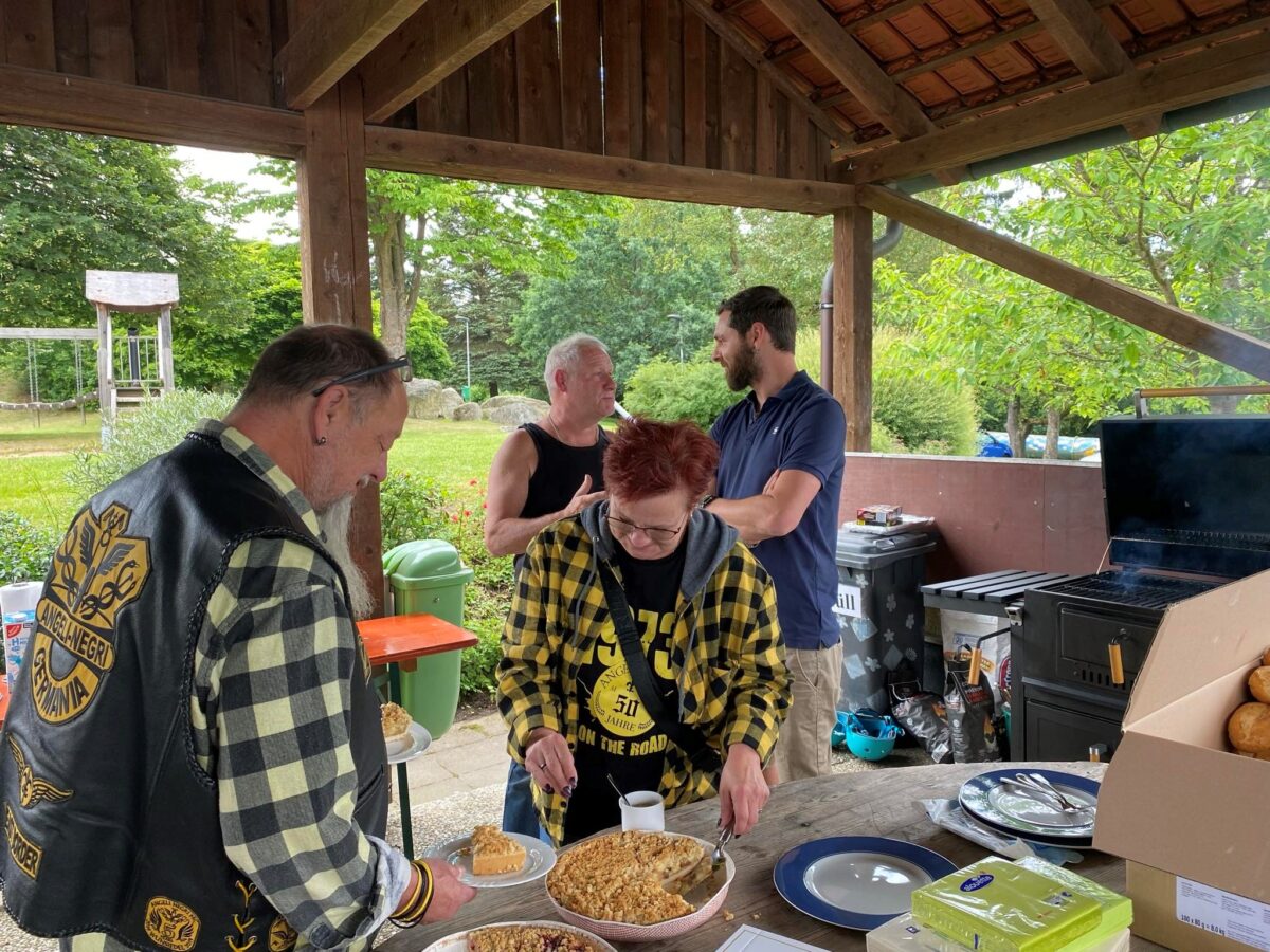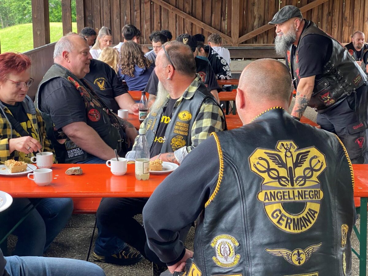 Der Konvoi mit insgesamt 14 Motorrädern wurde vom Einrichtungsleiter des Kinder- und Jugendhilfezentrums “Haus St. Elisabeth” Peter Wasel begrüßt. Insgesamt waren rund 90 Kinder, Erzieherinnen und Erzieher und Biker anwesend. Nachdem der Kuchen “ruckzuck” vertilgt war, begutachteten und bestaunten die Kids die schweren Maschinen. Das Probesitzen und so richtig Gasgeben hat ihnen dabei natürlich am meisten Spaß gemacht.