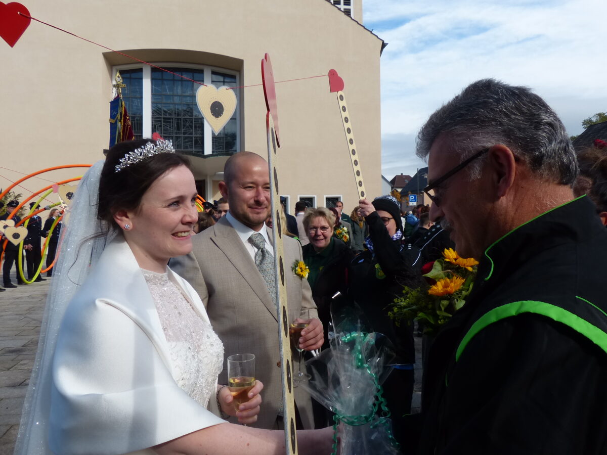 Viele Vereine begleiteten das Brautpaar in die gemeinsame Zeit, nach der standesamtlichen Trauung gaben sie sich am vergangenen Samstag das Ja-Wort. Während der Trauungszeremonie stellten sich die Vereinsvertreter zum Spalier auf. Feuerwehr, Schützenverein Hubertus und Schnupfer Club – alle warteten auf das frisch vermählte Brautpaar, ist es doch in allen Verein tief verwurzelt und aktiv.