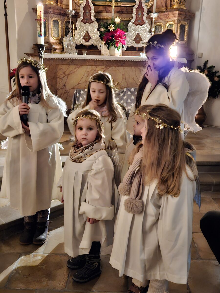 Mitwirkende des Krippenspiels 2024: Erzähler Jonas Ogarek, Maria – Luisa Hösl, Josef, Jonas Wirth, Soldat Jakob Zilbauer, Engelschar: Mathilda Kiener, Eva Saller, Lea-Magdalena Feneis, Isabella Ogarek, Mia Meier, Laura Namberger, Lilli Hösl, Wirte: Josef Zilbauer, Tim Sax, Stefan Zilbauer, Hirten: Lukas und Simon Bock, Milan Kiener, Jonas Eiberweiser, Leon Ertl, Ben Meier. Für die Choreographie und Regie setzten sich Stefanie Rückerl, Daniela Bock und Daniela Ogarek ein.