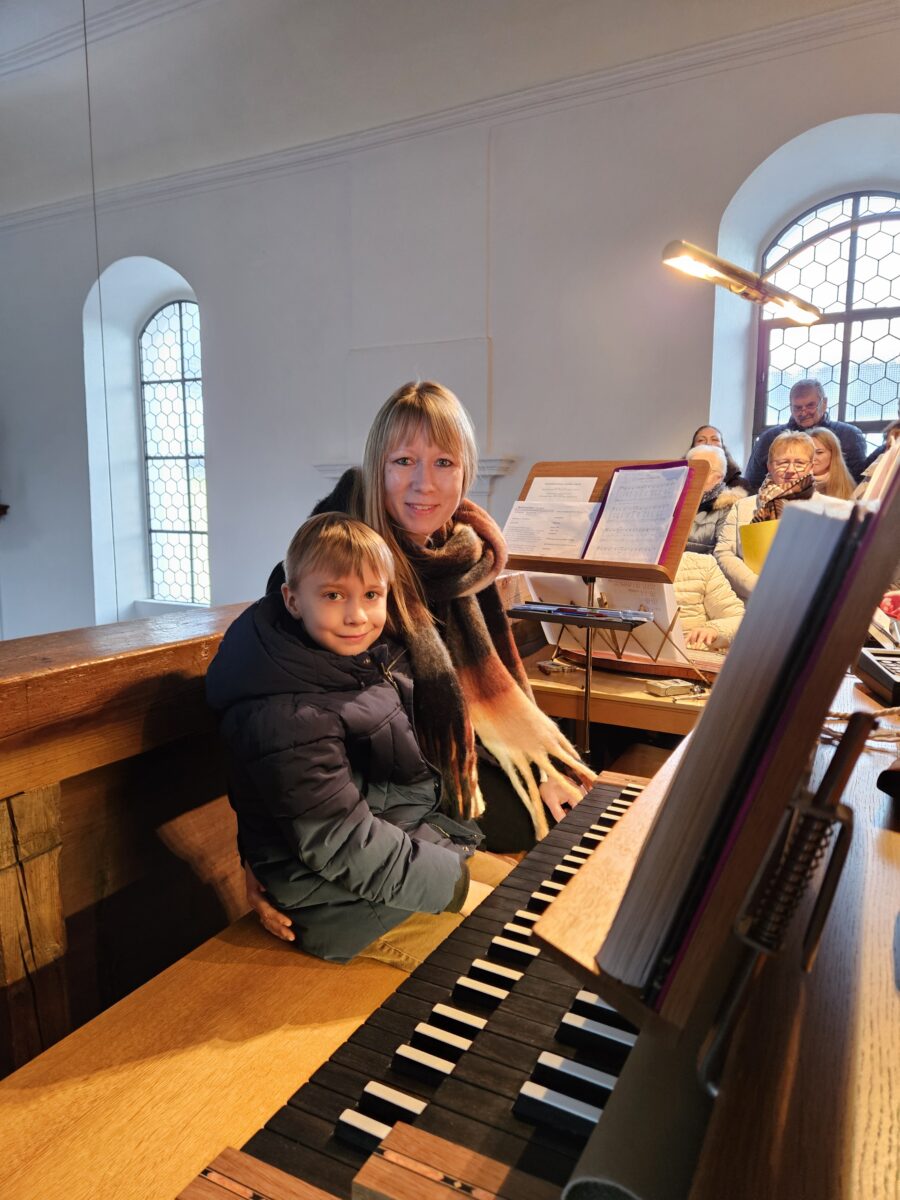 Schon weit vor der Zeit warteten zahlreiche Gottesdienstbesucher in der überaus vollbesetzten Pfarrkirche Mariä-Himmelfahrt in Böhmischbruck auf den Beginn der Christmette. In der heimeligen, nur mit Kerzen erleuchteten Kirche zauberten die 8-jährigen Jungen Lukas Bock und Jonas Schiffner an der Orgel mit ihrem Spiel und dem Kirchenchor unter der Leitung von Daniela Bock während der Wartezeit eine ganz besondere Atmosphäre. Auch die „FrischZelln“ Andrea ZellnerVitzthum, Martin Zellner und Agnes Frischholz stimmten mit Zither, Hackbrett und Akkordeon auf die Heilige Nacht ein.