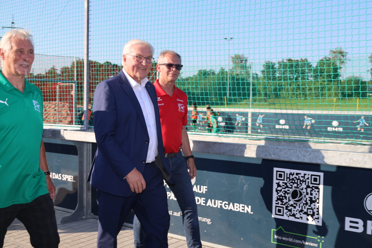 Steinmeier besucht das Training von Jugendmannschaften. Seine Beweggründe erklärt er am Nachmittag: “Kinder und Jugendliche waren von Corona am stärksten betroffen.” Für keine andere Bevölkerungsgruppe dauerten die Lockdowns länger. Seine Besuche bei Kindern und Jugendlichen sollen Signal sein, so Steinmeier: “Wir verstehen, dass ihr in dieser Zeit gelitten habt.”