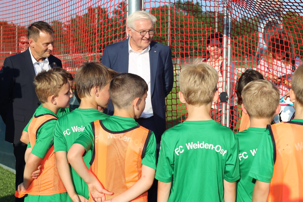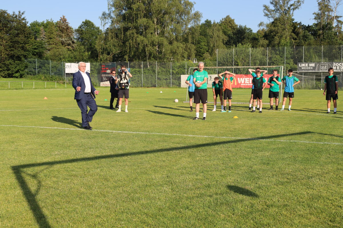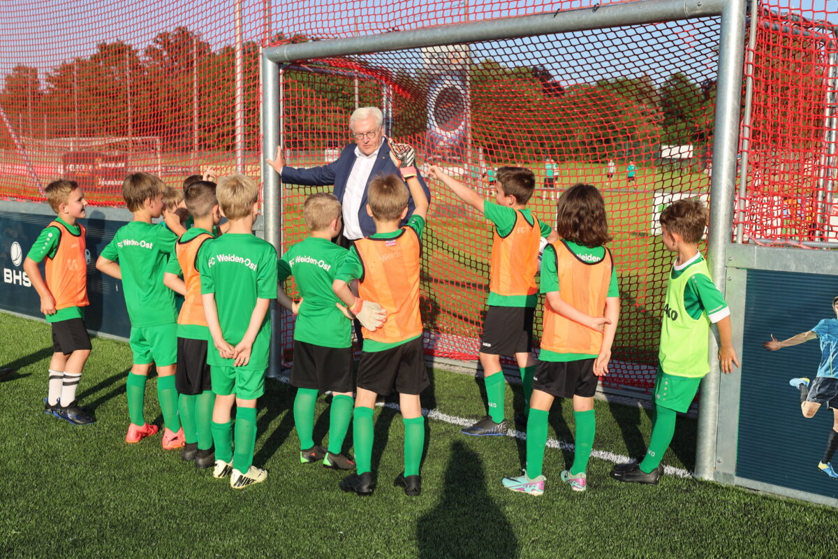 Bundespräsident besucht FC Weiden-Ost: Späße auf dem Fußballfeld