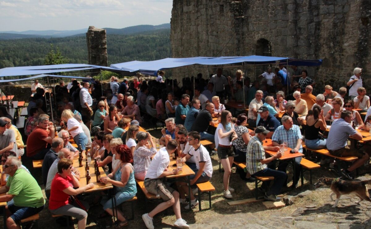 Der gut 300 Meter lange Aufstieg zur Flossenbürger Burgruine trieb am Sonntagnachmittag so manchem Festbesucher bei hochsommerlichen Temperaturen den Schweiß auf die Stirn. Doch die Mühe lohnte sich, denn die alten Gemäuer und die exponierte Lage der Burganlage mit dem damit verbundenen phantastischen Weitblick bildeten das einmalige Ambiente für das Burgfest.