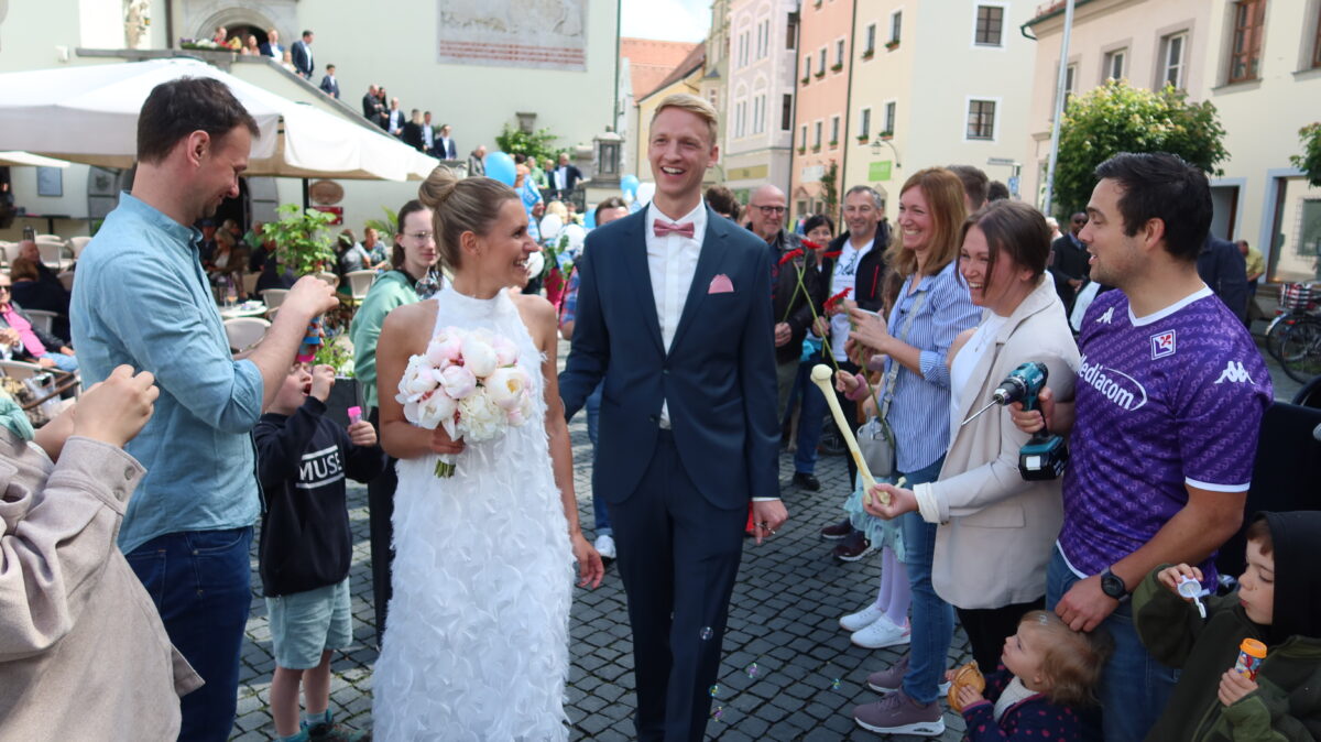 Gefeiert wurde im “Zoe”. Die Hochzeitsreise nach Südtirol haben Sophia und Christoph Schirdewahn schon gebucht. Aber vorher wollen sich die beiden am 15. Juni in der Josefskirche noch kirchlich trauen lassen. Der Bräutigam ist dort stellvertretender Sprecher des Pfarrgemeinderats. Außerdem ist er zweiter Vorsitzender bei der DLRG.
