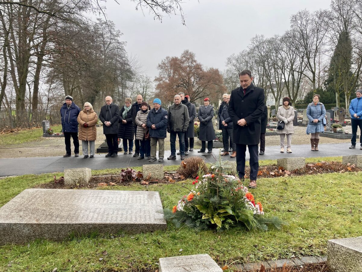 Zum Gedenkakt waren neben Bürgermeister Reinhold Wildenauer, Kulturamtsleiterin Sabine Guhl und einigen Stadträten auch ranghohe Vertreter der Bundeswehr gekommen: Oberstleutnant Hekja Marlen Werner, Kommandeurin des Panzerartilleriebataillons 375, und Oberstleutnant Stefan Zadlo, Kommandeur des Panzerartilleriebataillons 131. Das Team des Städtischen Friedhofs und der Stadtgärtnerei hatte im Vorfeld für einen würdigen optischen Rahmen gesorgt.