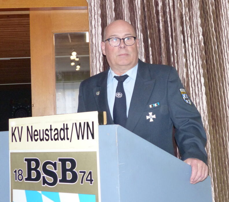 Die Blaskapelle stellte zwei Trompeter zum Totengedenken ab, Alfons Betzl steuerte dazu einige Gedanken bei. Der Neustädter Kreisverband ist seit vielen Jahren Spitzenreiter beim Sammeln für den Volksbund Deutsche Kriegsgräberfürsorge. „Im Kreisverband haben wir 42 Schützen und 43 Böllerschützen (die Flosser Landwehr ist da inbegriffen).“ Kreiskassier Peter Heinrich berichtete von einem kleinen Plus in der Kasse: „Aktuell haben wir noch 992 Mitglieder, der Sinkflug lässt sich nicht aufhalten. Wir haben in zwei Jahren rund 100 Mitglieder verloren.“