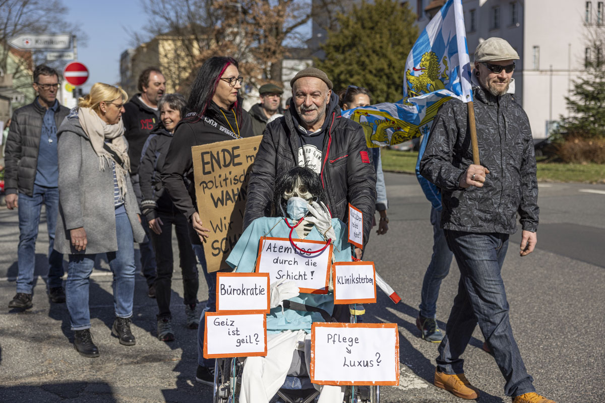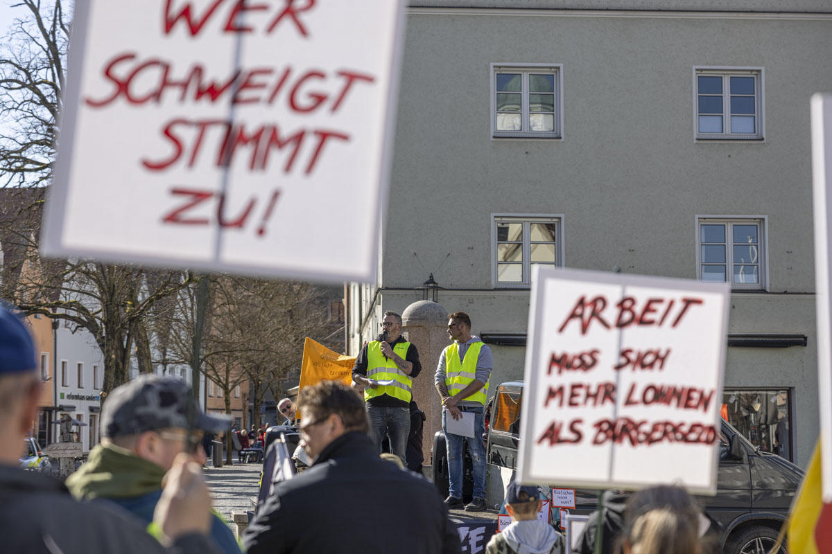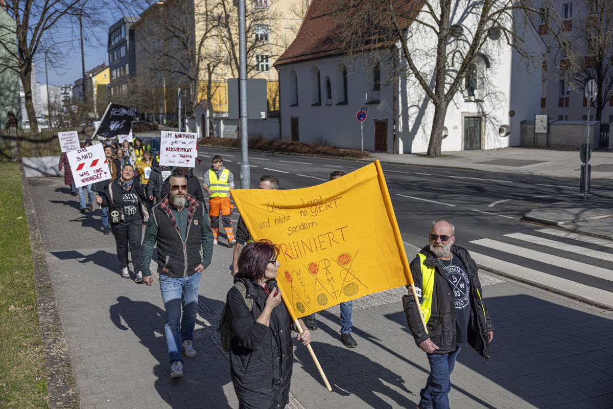 Am Samstag sind gut 50 Demonstranten mit Fahnen, Plakaten und Trillerpfeifen vom Parkplatz am Langen Steg zum Alten Rathaus der Stadt Weiden marschiert. Organisiert und angemeldet wurde die Veranstaltung von Karsten Burkhardt und Michael Götz. Mit ihrem Protestmarsch und der darauffolgenden Kundgebung wollten die Teilnehmer auf Missstände in Deutschland hinweisen, die ihnen das Leben aktuell besonders schwer machen.