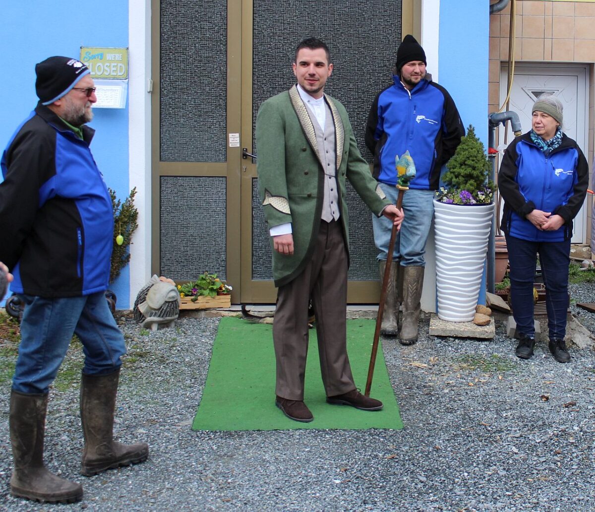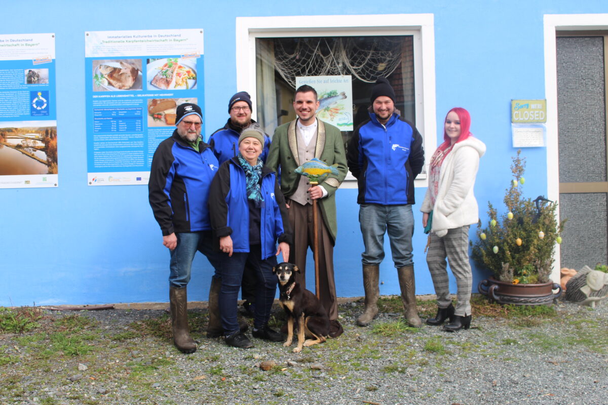 Seinen ersten Auftritt hat er bereits mit Bravour gemeistert. Als Überraschungsgast kam der neue Wassermann kurz vor Ende der Karpfensaison 2022/23 zur Betriebsführung beim Fischereibetrieb Stock in Kornthan. Hier wurde er vom Ersten Vorsitzenden der ARGE Fisch Thomas Beer und allen Teilnehmenden herzlich begrüßt. Dem jungen Mann war seine Aufregung anzusehen: „Ich fühle mich magisch und gleichzeitig erleichtert. Es geht los und ich bin sehr gespannt auf meine Amtszeit“, freute sich gebürtige Waldsassener nach der Vorstellung. Auch Thomas Beer zeigte sich zufrieden: „Mit Philipp haben wir einen guten Mann für diese Aufgabe gefunden“.
