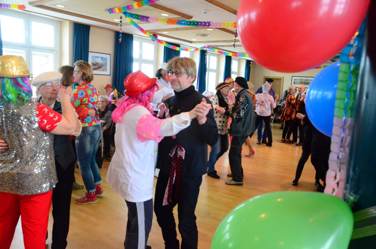 Für musikalischen Schwung sorgte die „Combo 77“, bei der Bürgermeister Reinhold Wildenauer selbst hinter dem Schlagzeug Platz nahm. Oberbürgermeister Jens Meyer und Bürgermeister Lothar Höher mischten sich unters närrische Volk. Der Tanzsportverein Dance Unlimited setzte mit seinen Showtanzgruppen unter dem Motto „Wild, Frei, Besonders“ Glanzpunkte, die „Oldies but Goldies“ überzeugten mit ihrem Line Dance. Seniorenbeauftragter Peter Klein führte mit Kamera und Humor durchs Programm. Organisiert wurde die Party von Tina Abel-Pschierer.