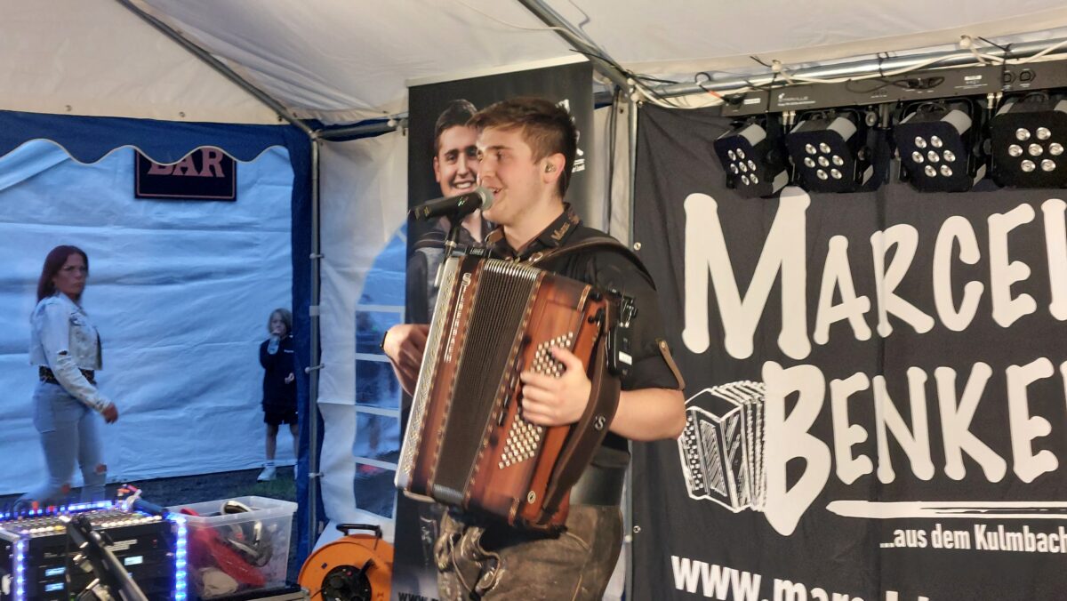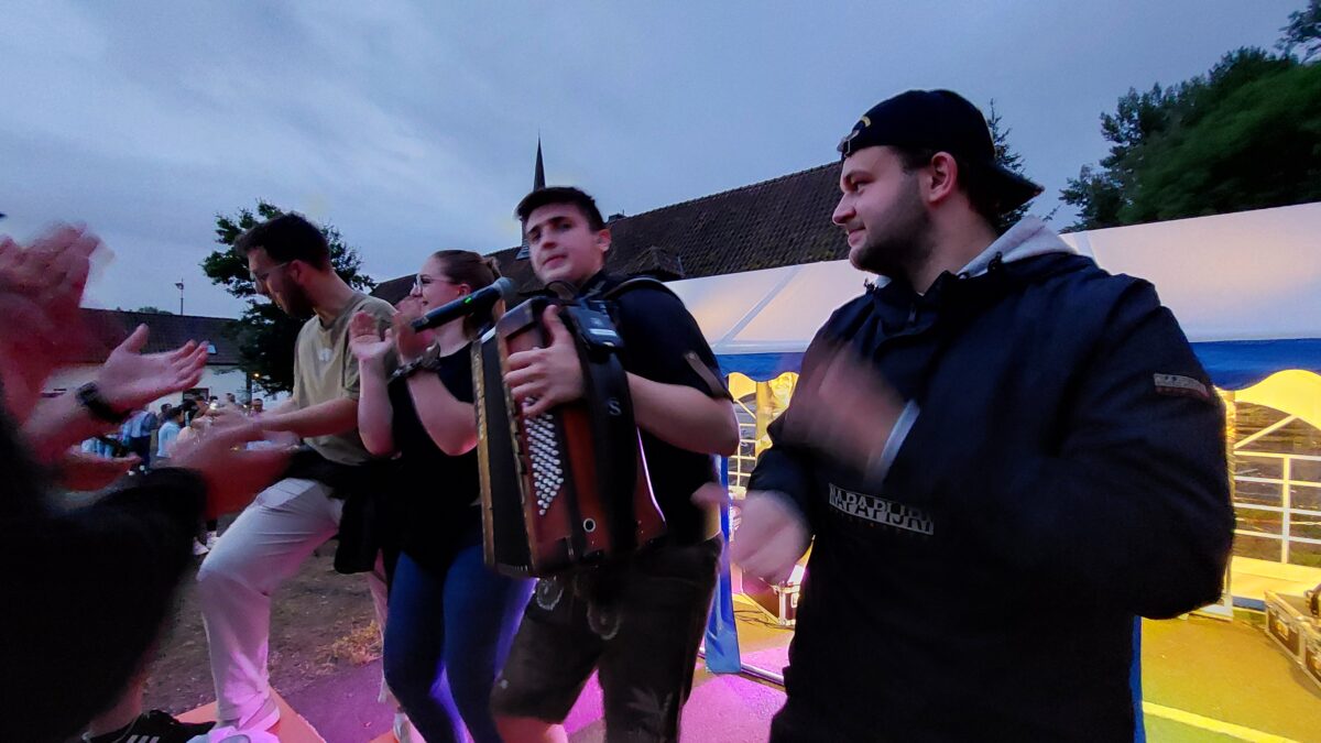 Rund 400 Gäste waren gekommen, um mit der DJK in die kürzeste Nacht des Jahres hinein zu feiern. Vor Ort gab es eine Cocktail-Bar, Steaks vom Grill, Käse, Brezen, Bratwürste und Popcorn. Auch die Kinder kamen auf ihre Kosten. Die DJK-Garde “Dance Unlimited” gab Kostproben ihres Könnens. Als Show-Act hatte die Vorstandschaft den Entertainer und Alleinunterhalter Marcel Benker aus Himmelkron eingeladen, der mit seinem Akkordeon die Leute auf die Bänke brachte.