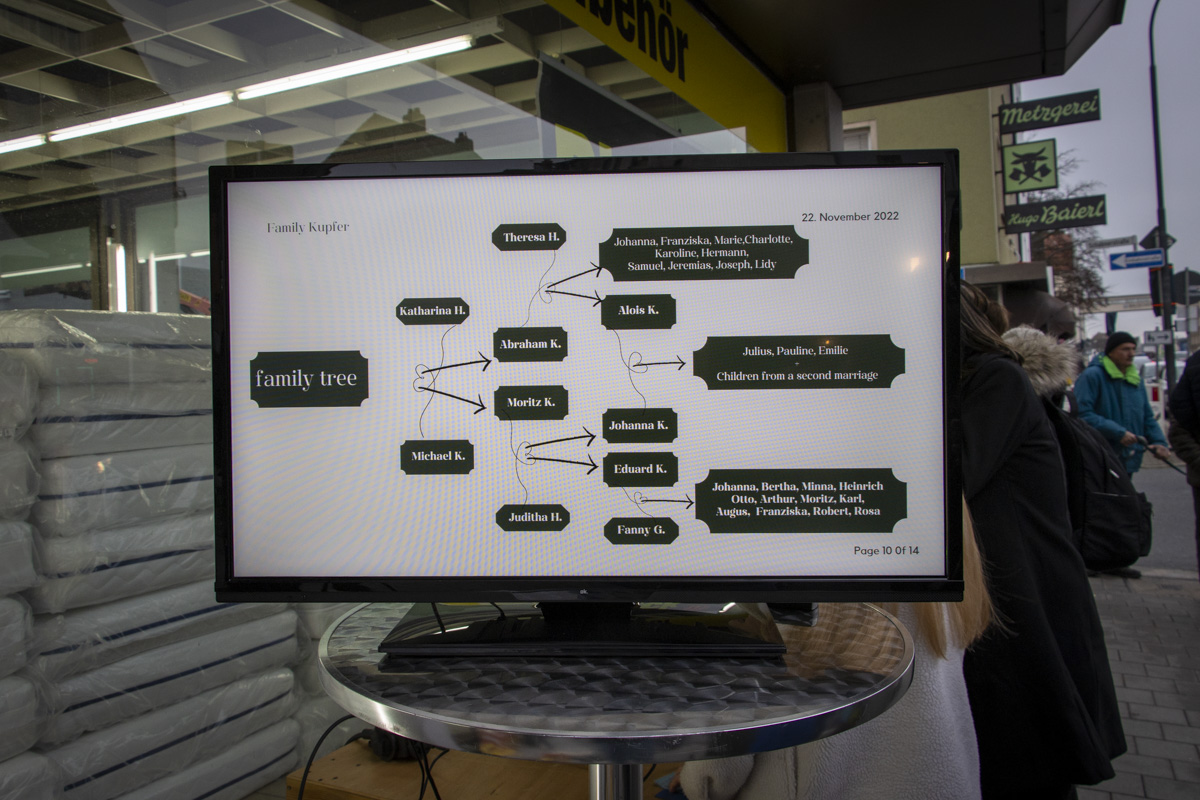 In Weiden sind die der Familie Kupfer gewidmet, die Weidens Geschichte stark geprägt hat: Eduard Kupfer betrieb seit 1892 eine Glasfabrik in Moosbürg, die dann zu Detag und später zu Flachglas wurde. In der Bahnhofstraße 33 bewohnten er und seine Frau Fanny eine prächtige Villa mit ihren Kindern. Neun ihrer Kinder starben während der Nazizeit, ermordet in Konzentrationslagern oder Ghettos, verschollen im Nirgendwo. Auch Otto Kupfer war ein Sohn Eduards, er war der letzte Firmenbesitzer in Weiden, auch er starb während der Nazizeit, ermordet 1942 in Theresienstadt.